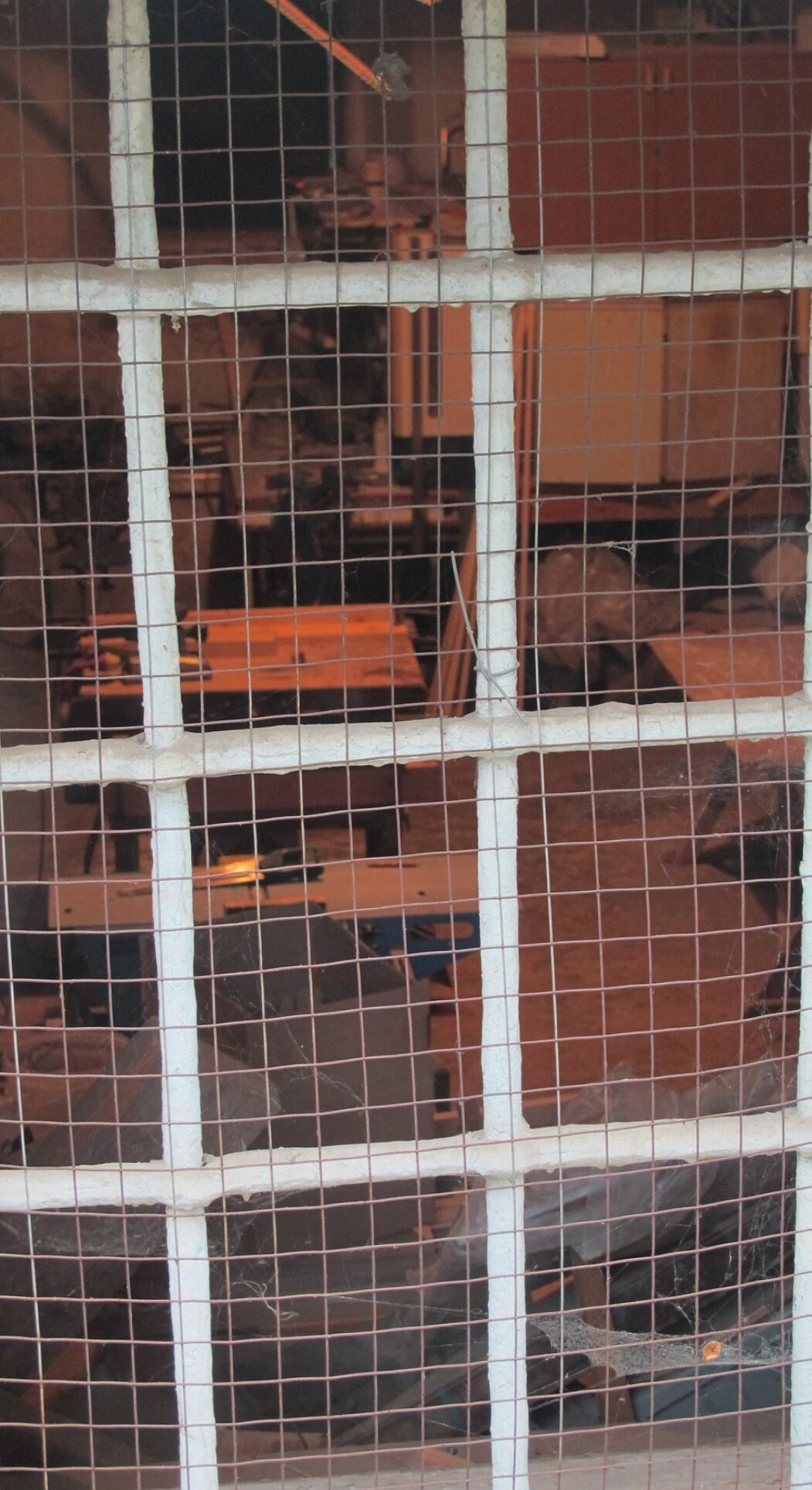 За решеткой открывается вид на внутреннее пространство церковного помещения. Естественный свет, проникающий сквозь оконный проём, мягко освещает интерьер, позволяя различить элементы церковной утвари и конструкции. Данный ракурс позволяет ощутить атмосферу благоговения и покоя, свойственную этому священному месту.