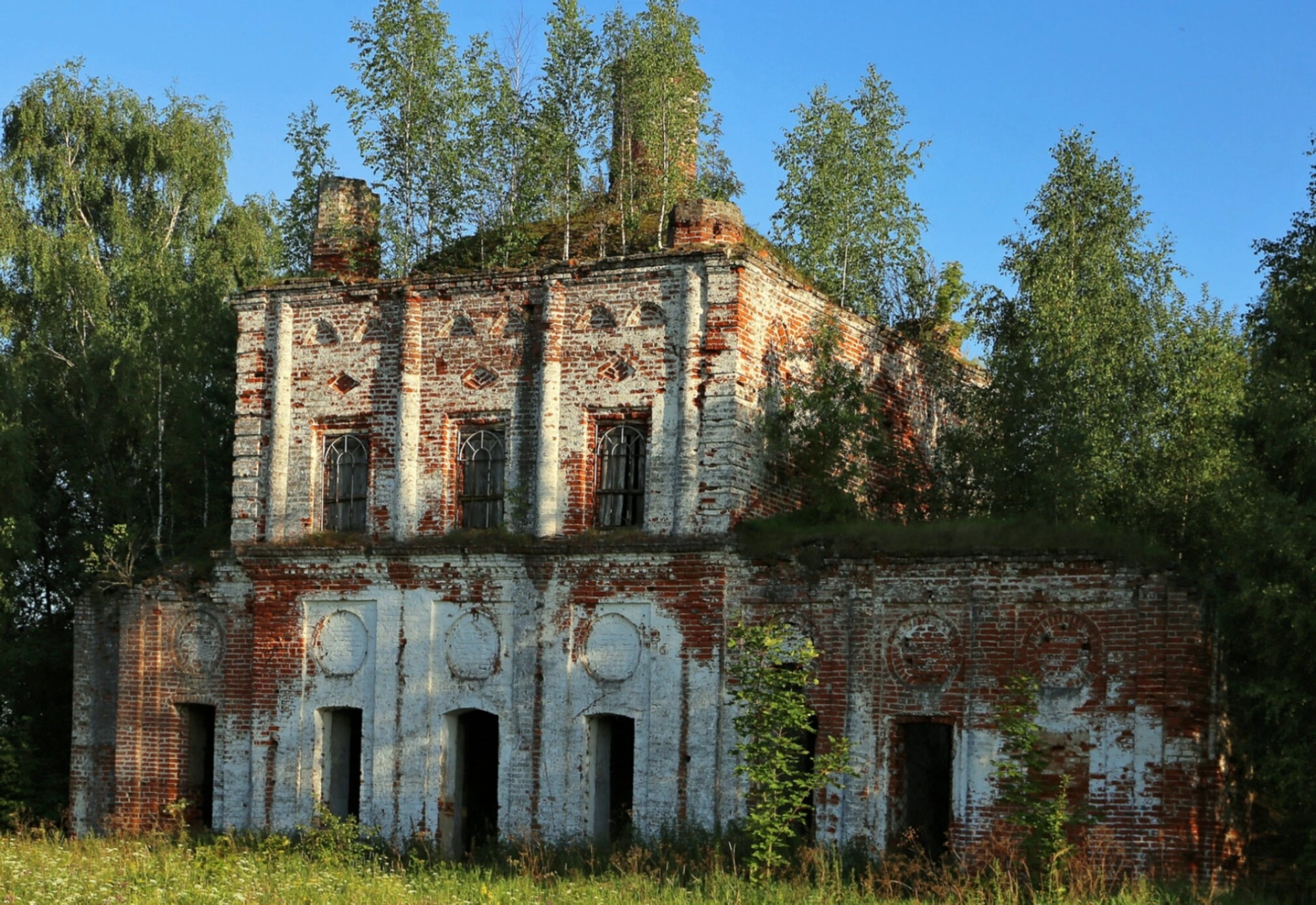 На представленной фотографии запечатлена Церковь во имя Преподобного Сергия Радонежского, расположенная в селе Аньково Ильинского района Ивановской области. Этот некогда величественный православный храм ныне пребывает в состоянии запустения и требует восстановления.