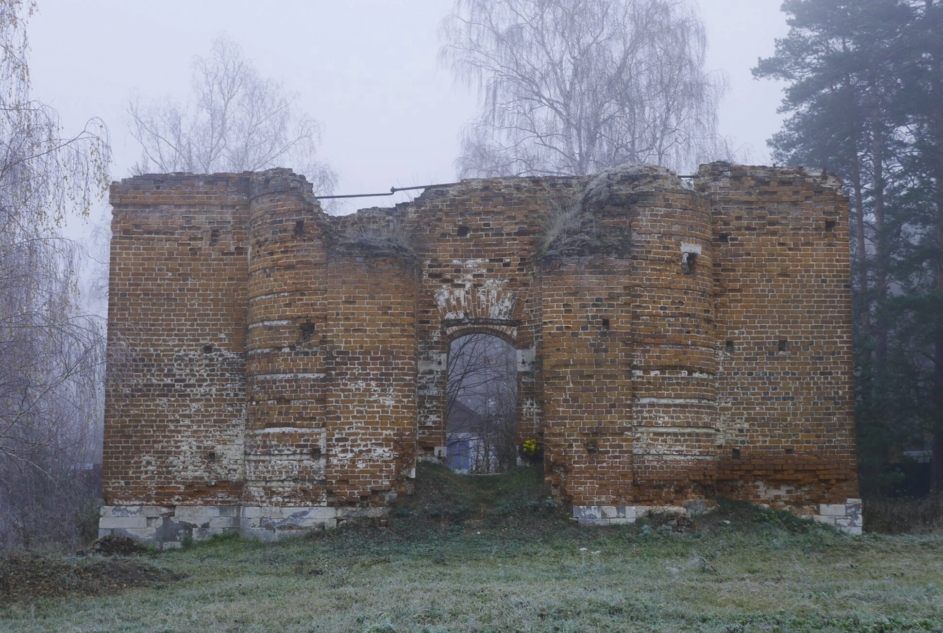 На представленной фотографии запечатлена Церковь Рождества Пресвятой Богородицы, также известная как храм Преподобного Сергия Радонежского, расположенная в микрорайоне Батайск города Ступино Московской области. Этот православный храм, ныне пребывающий в полуразрушенном состоянии, представляет собой значимый памятник церковной архитектуры конца XIX века.