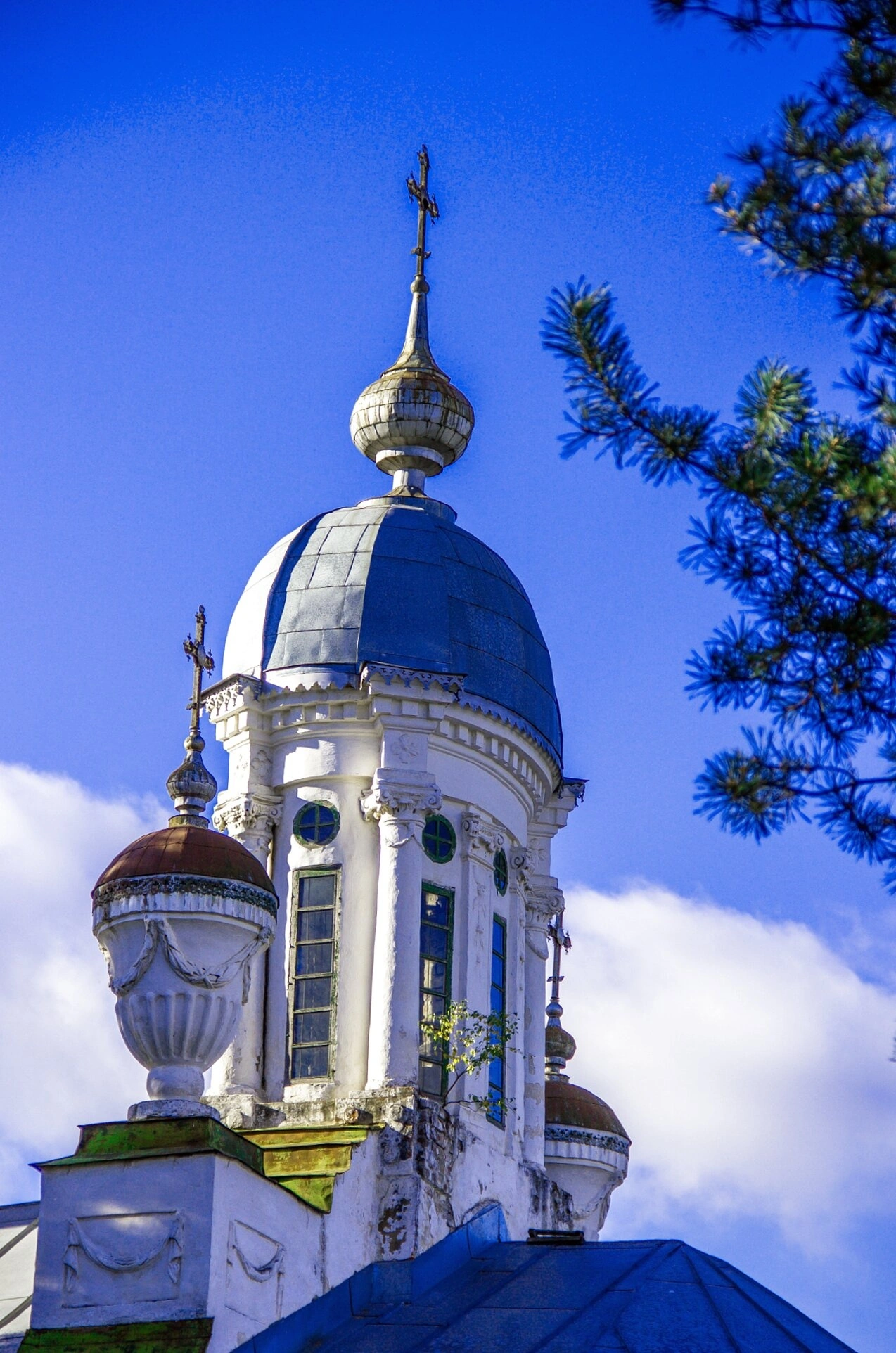 На представленной фотографии запечатлён фрагмент благолепия Церкви во имя Преподобного Варлаама Хутынского, что располагается в древнем граде Вологде. Взору открывается величественный светлый храм, устремлённый в небесную высь. Особое внимание приковывает глава церкви, увенчанная золочёным крестом и покрытая лазурной главкой, что символизирует небесную чистоту и горний мир.