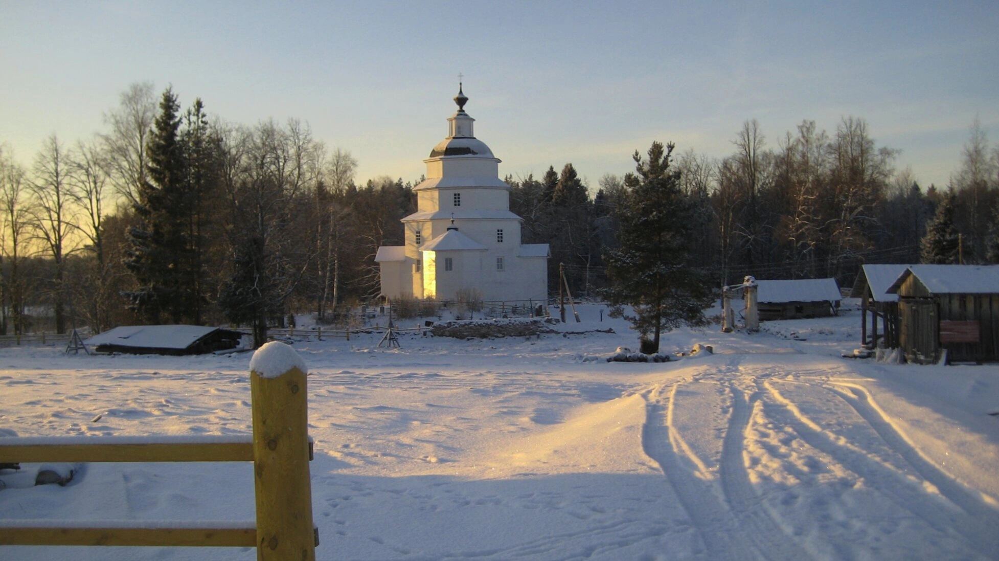 Зимний пейзаж на фотографии раскрывает особую суровую красоту этих мест. Иней украшает ветви деревьев, а глубокий снег подчёркивает уединённость и отрешённость храма от мирской суеты, приглашая к молитвенной сосредоточенности. Данный архитектурный памятник является объектом культурного наследия Российской Федерации и находится под охраной государства, продолжая оставаться не только музеем, но и местом молитвы.
