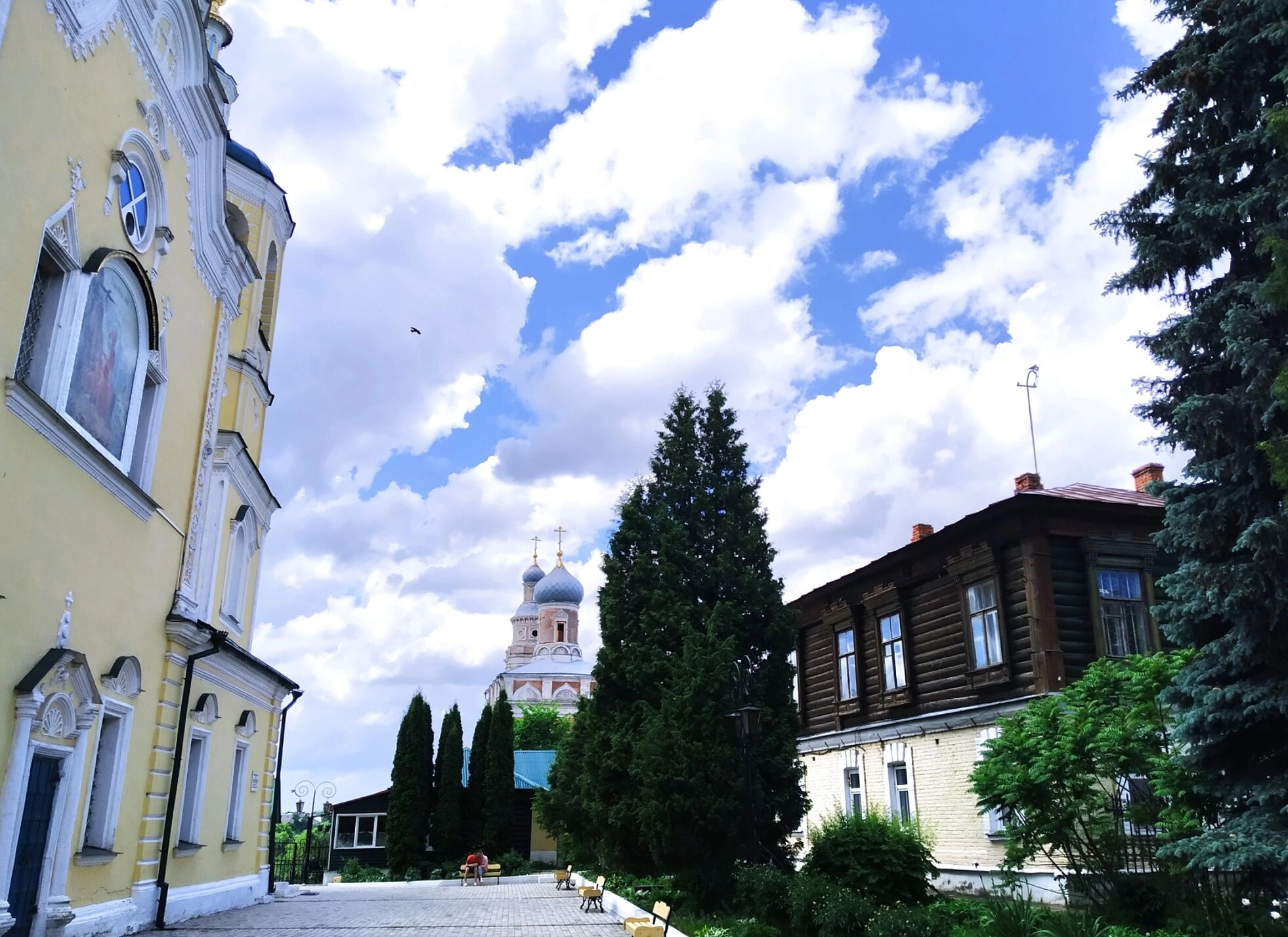 Храм пророка Илии является значимым духовным центром Серпухова. Архитектура здания отражает традиции русского церковного зодчества. На снимке видны основные элементы храмовой архитектуры: четверик, увенчанный главкой, и колокольня. Фасад здания отличается благородным сочетанием желтого цвета стен и белых декоративных деталей.