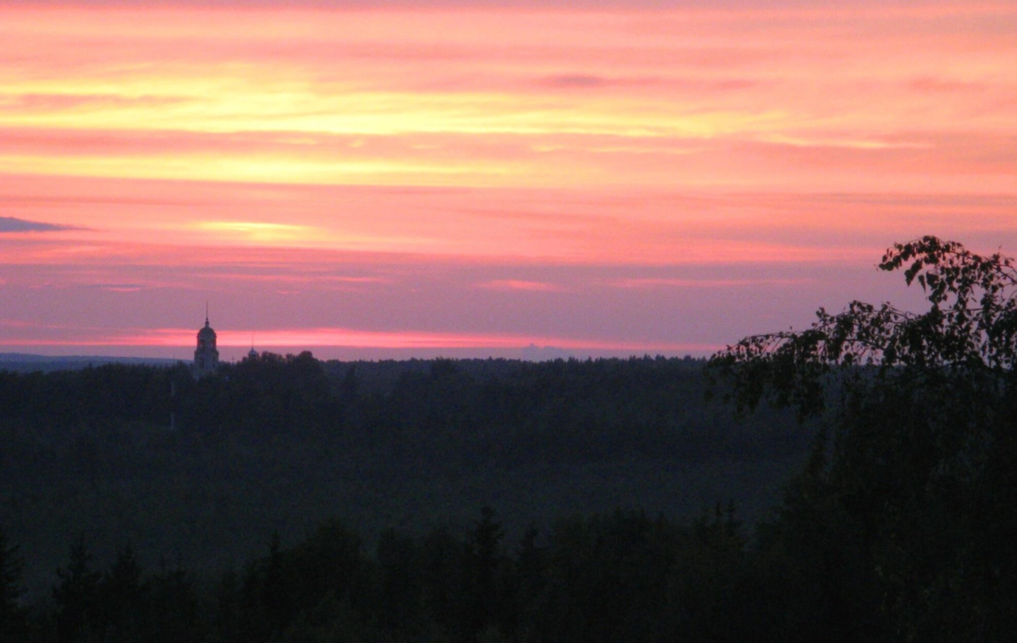 Фото церкви Рождества Богородицы в Глебовском на закате