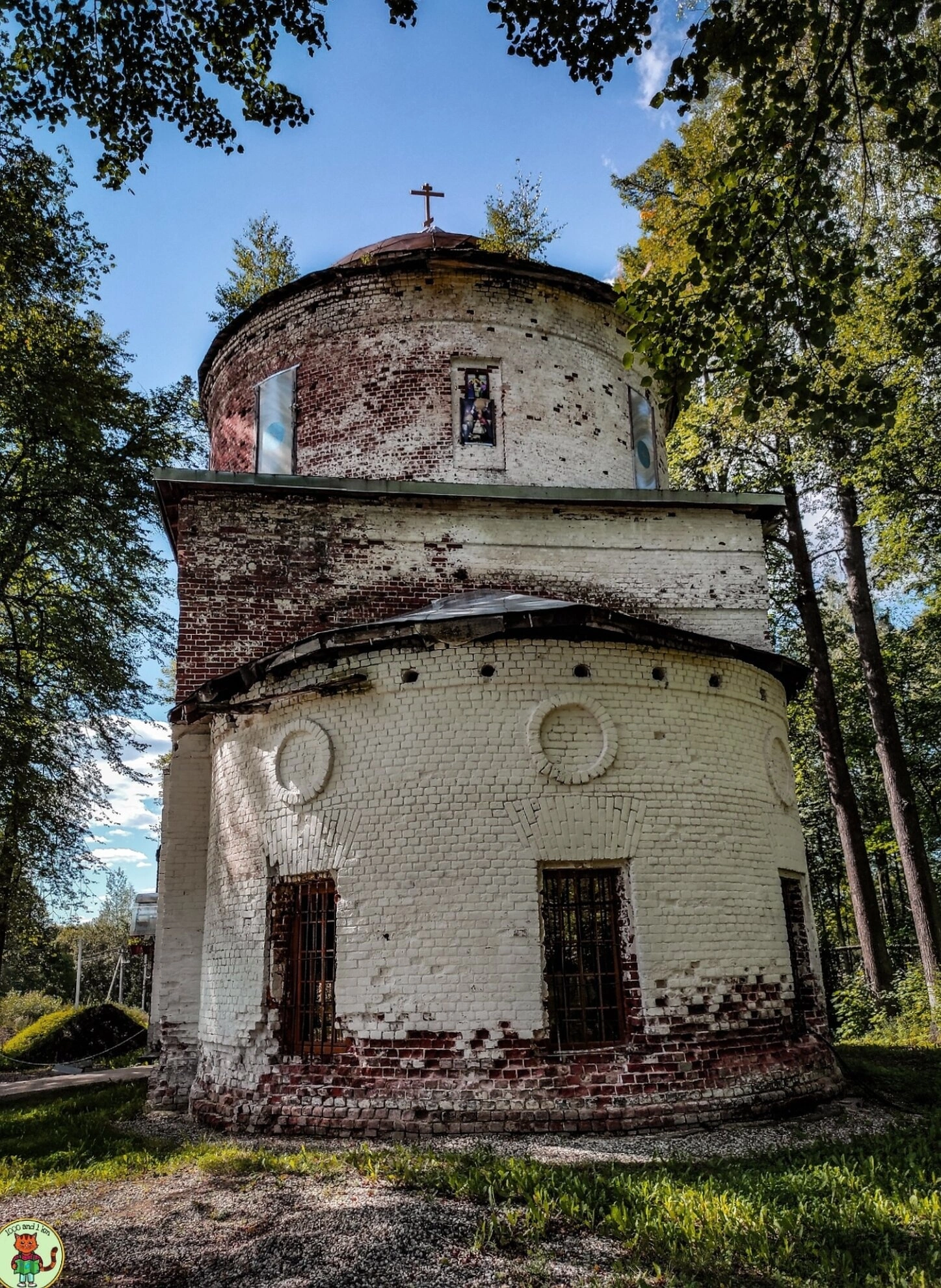 Окружающий храм густой лес подчёркивает удалённость location от населённых пунктов и создаёт атмосферу особой уединённости. Заросшая травой и кустарником территория вокруг церкви усиливает впечатление заброшенности этого некогда духовного центра.