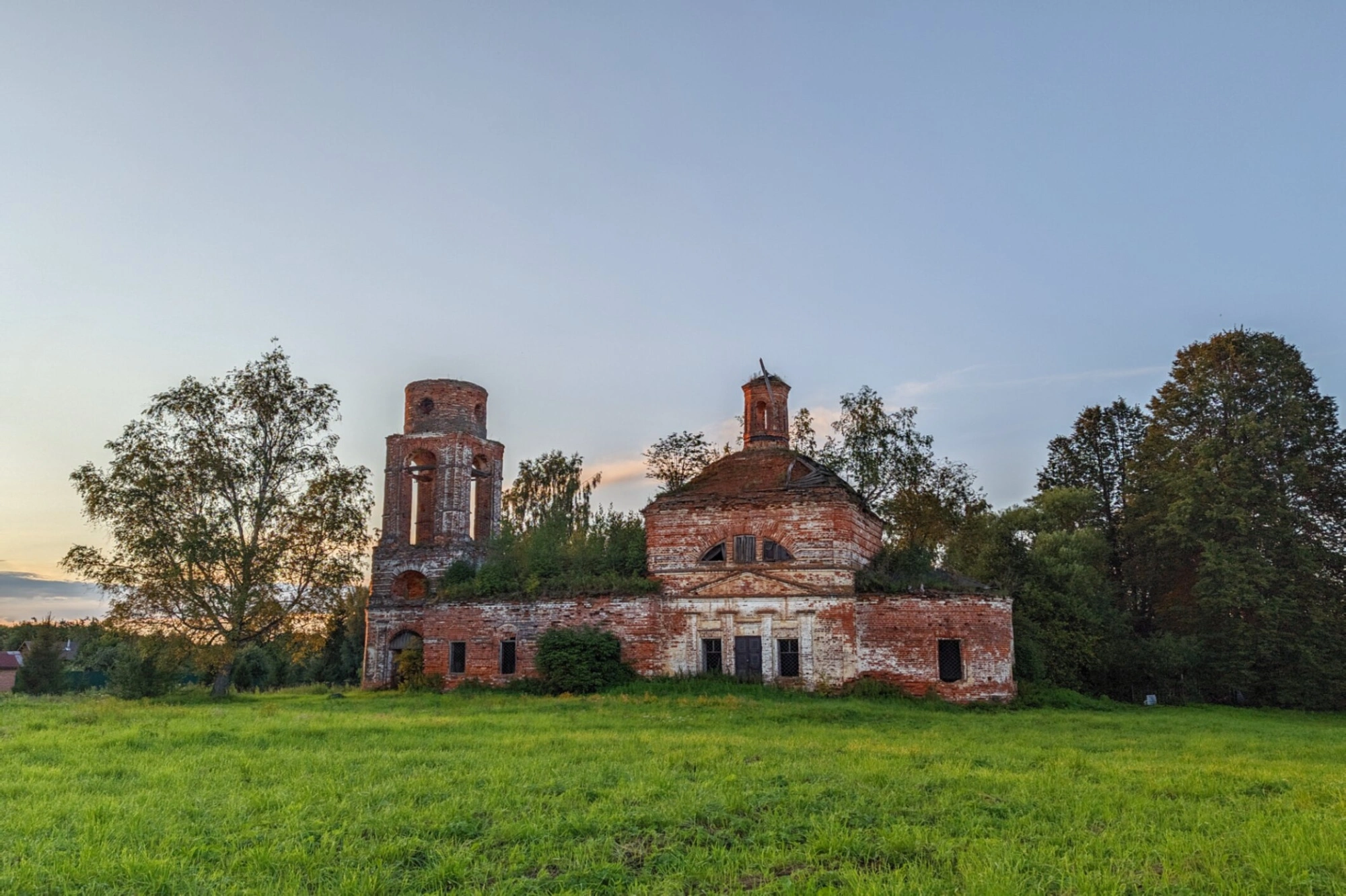 На представленной фотографии запечатлена полуразрушенная Церковь Рождества Христова, расположенная в деревне Афанасьево Комсомольского района Ивановской области. Храм возвышается на живописном холме, поросшем травой, что создаёт особую атмосферу духовного упокоения и исторической памяти.