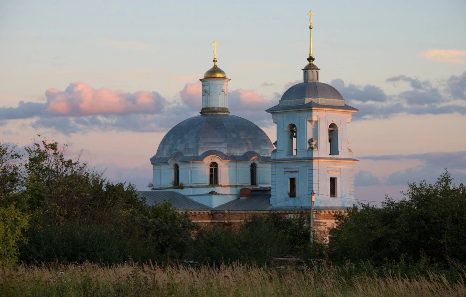 На представленной фотографии запечатлена Церковь Рождества Христова, расположенная в селе Гололобово на территории Богородице-Рождественского Бобренева мужского монастыря. Данный храм является частью архитектурного ансамбля монастыря, основанного в XIV веке по благословению преподобного Сергия Радонежского.