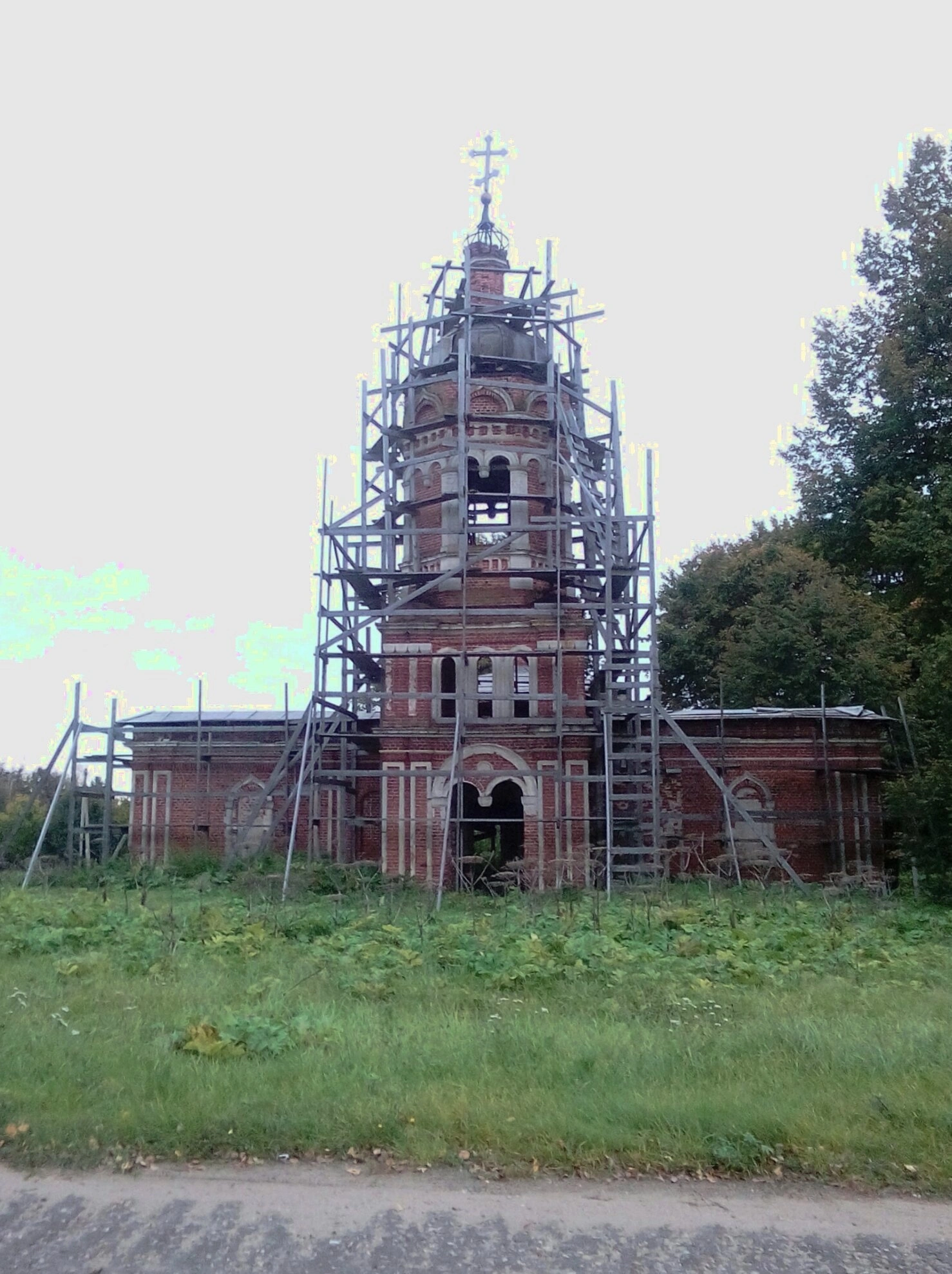 Каменный храм был возведён в 1848 году на средства местного помещика, надворного советника Дмитрия Семёновича Рачинского, сменив собой прежнюю деревянную церковь. Архитектура здания представляет собой традиционный для русского церковного зодчества стиль с элементами классицизма. Основной объём венчает массивный световой барабан с луковичной главкой и крестом, рядом высится трёхъярусная колокольня, также увенчанная куполом.