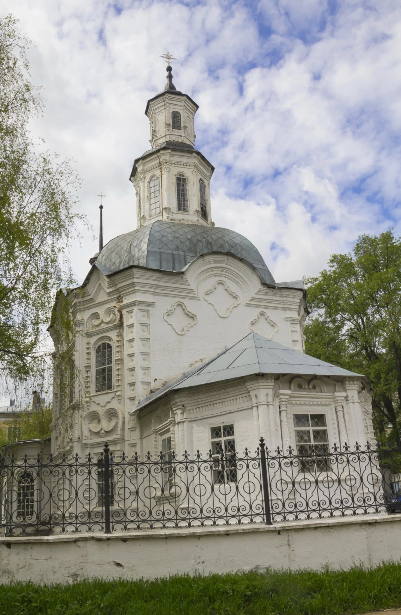 На представленной фотографии запечатлена Церковь Рождества Иоанна Предтечи, расположенная в историческом центре города Кирова (бывшей Вятки). Этот православный храм, являющийся объектом культурного наследия, был первоначально возведён в 1714 году, что относит его к числу старейших каменных построек города.