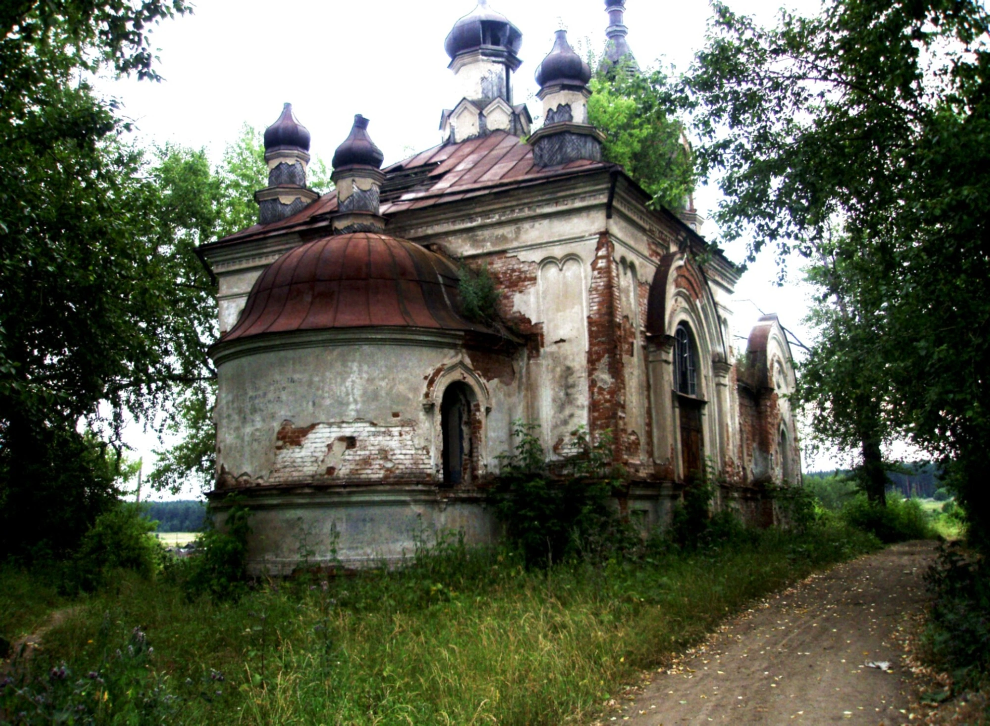 На представленной фотографии запечатлён храм в честь Рождества святого Пророка, Предтечи и Крестителя Господня Иоанна, расположенный в селе Башкарка Свердловской области. Этот православный храм, ныне пребывающий в полуразрушенном состоянии, является немым свидетелем истории и духовной жизни уральского села.