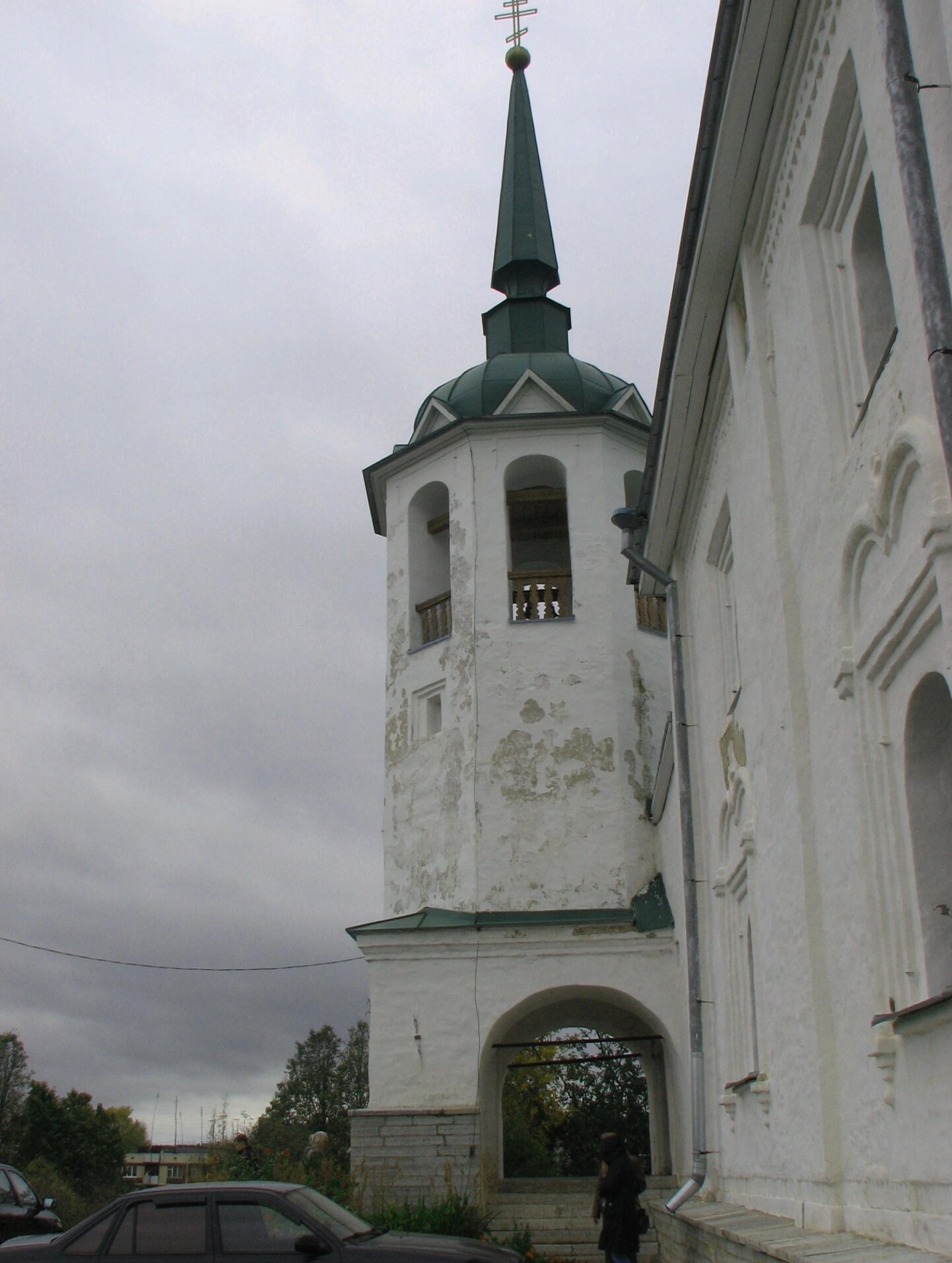 Архитектурный облик церкви, который мы видим сегодня, в значительной степени сложился в XVII столетии. На снимке хорошо просматривается стройная шатровая колокольня, которая является композиционным центром сооружения. Белоснежные стены, лаконичные формы и устремлённость ввысь создают образ величественный и в то же время умиротворённый, характерный для северной традиции храмового строительства.