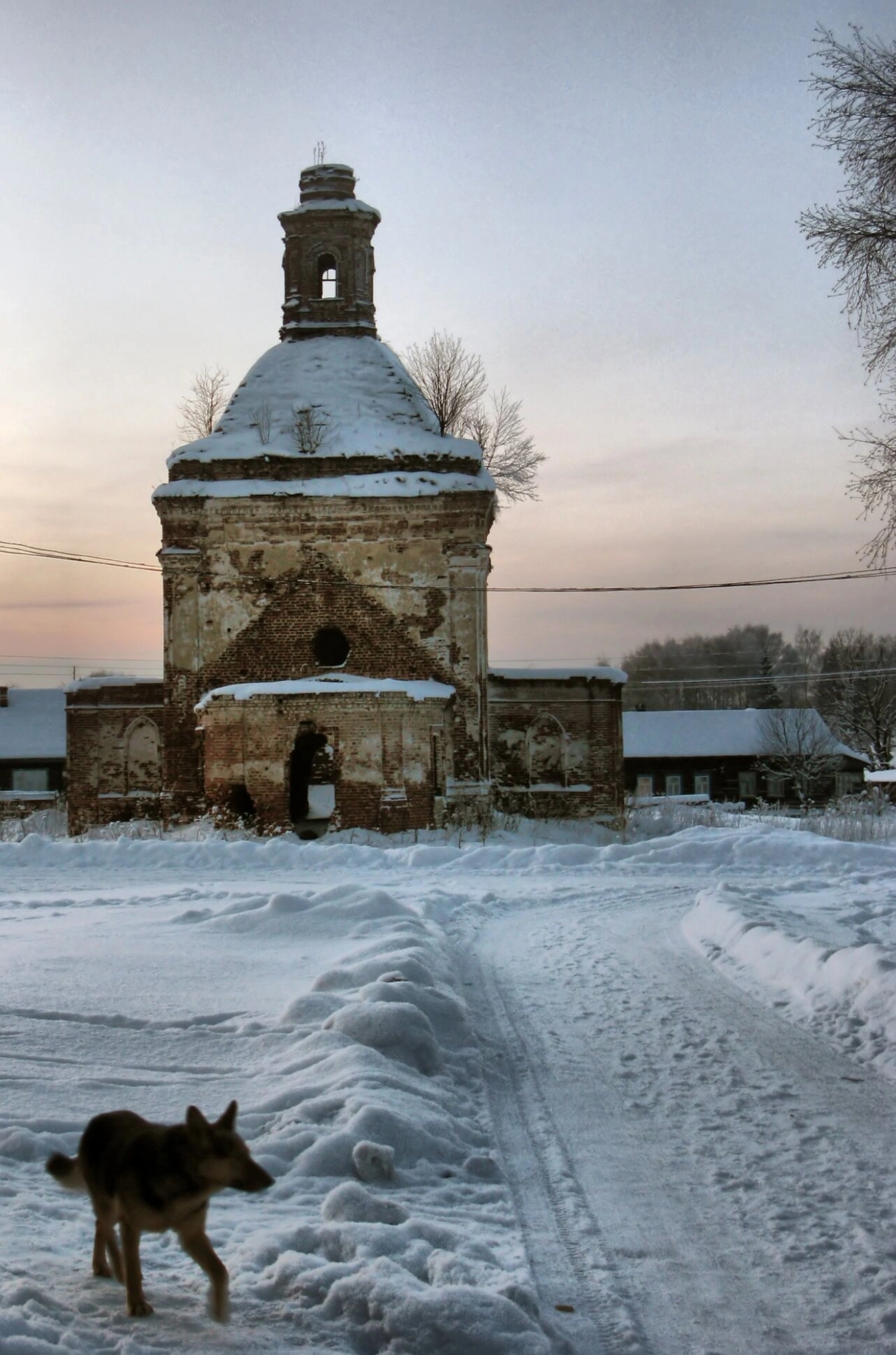 На представленной фотографии запечатлен зимний вид храмового комплекса в селе Жвалово Судиславского района Костромской области. Снежное покрывало окутывает землю и кровлю церкви, создавая атмосферу благоговейной тишины и умиротворения, характерную для русской православной зимы.