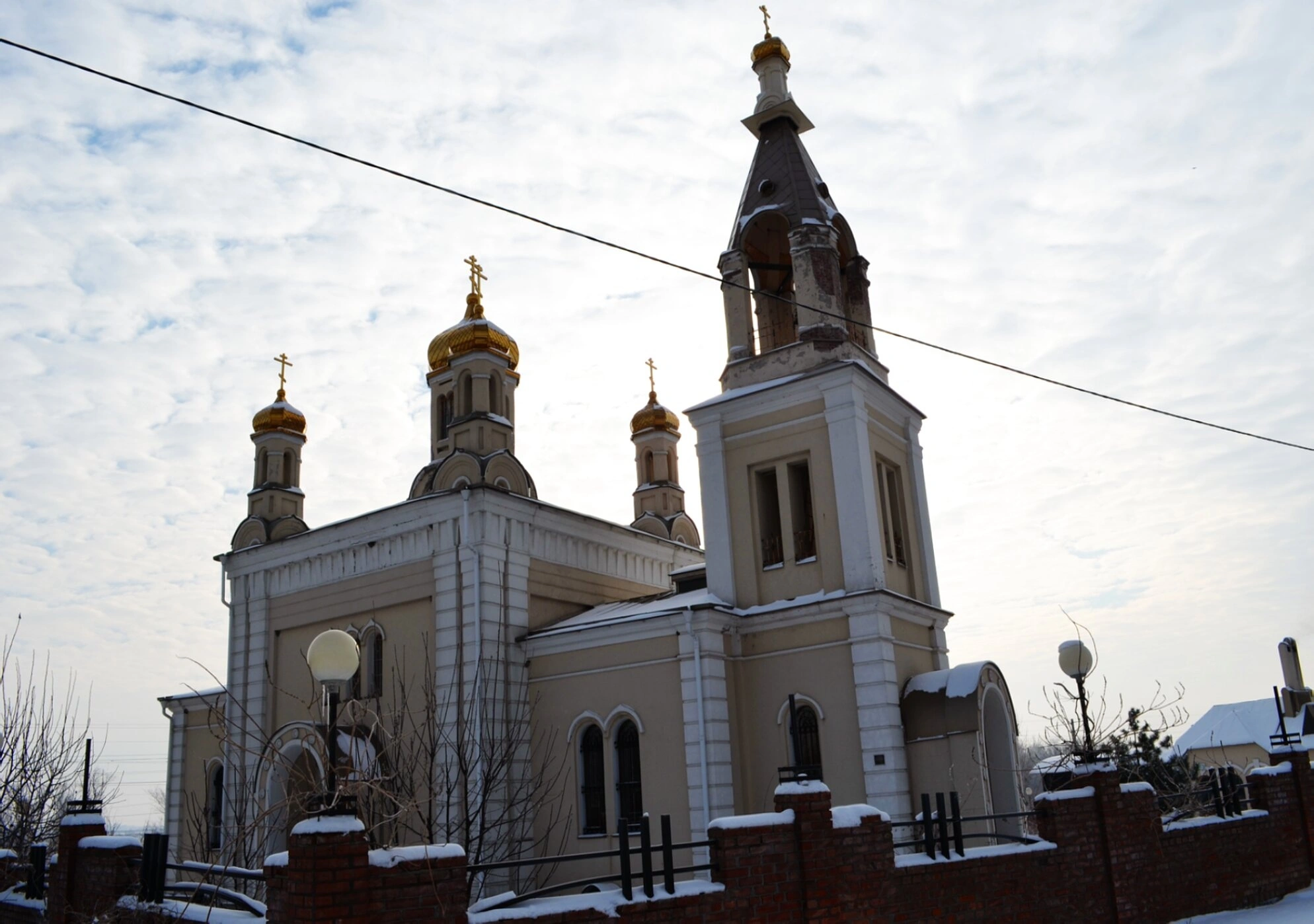 Архитектура храма представляет собой образец русского провинциального зодчества с элементами классицизма, а в современных источниках его стиль определяется как русско-византийский. Основной объем, выкрашенный в светлые тона, венчают пять куполов, центральный и два боковых из которых покрыты золотом и увенчаны православными крестами. С западной стороны к храму примыкает высокая колокольня с арочными проемами для звона и шатровым завершением. Снимок позволяет рассмотреть строгую симметрию фасадов, украшенных белыми лопатками и деталями.