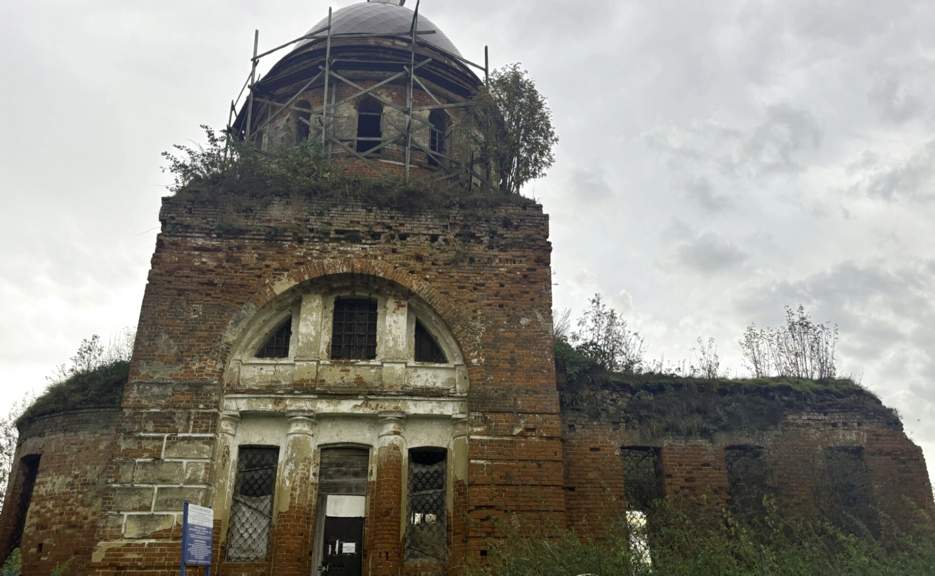 Пасмурное небо, запечатленное на снимке, усиливает ощущение скорби и утраты, вызываемое видом некогда благолепного храма, ныне пребывающего в разрухе и требующего возрождения для продолжения своего сакрального предназначения.