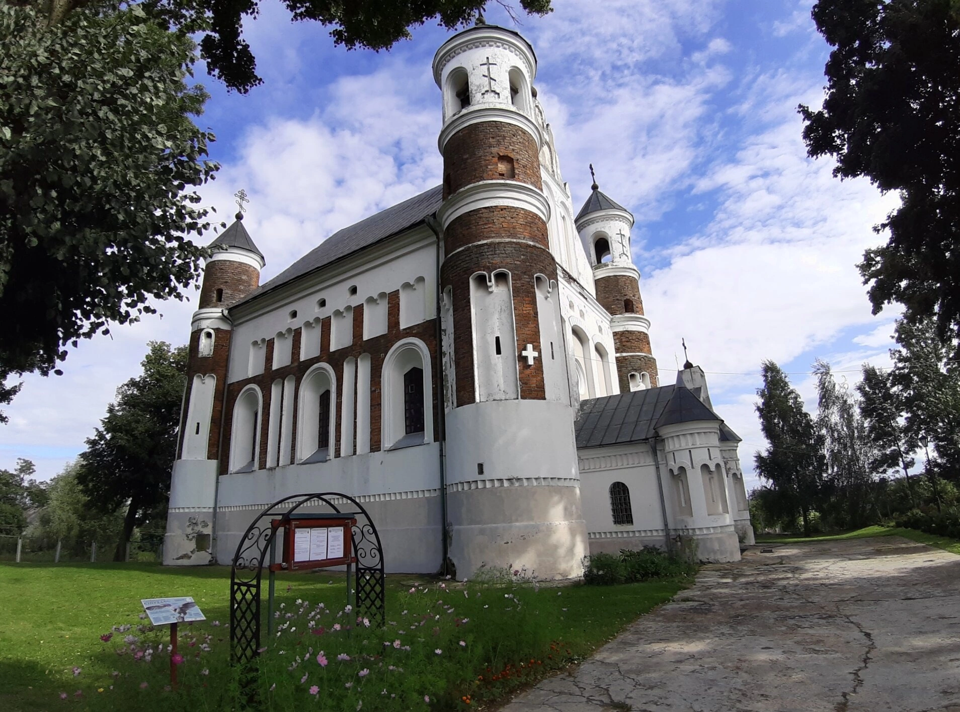 Церковь была возведена из кирпича в 1524 году на средства православного владельца здешних мест, что делает её одним из древнейших действующих православных храмов на территории Беларуси. Монументальное сооружение сочетает черты готики и ренессанса, а его мощные стены, угловые башни с бойницами и машикулями свидетельствуют о его оборонительном предназначении в смутные времена.