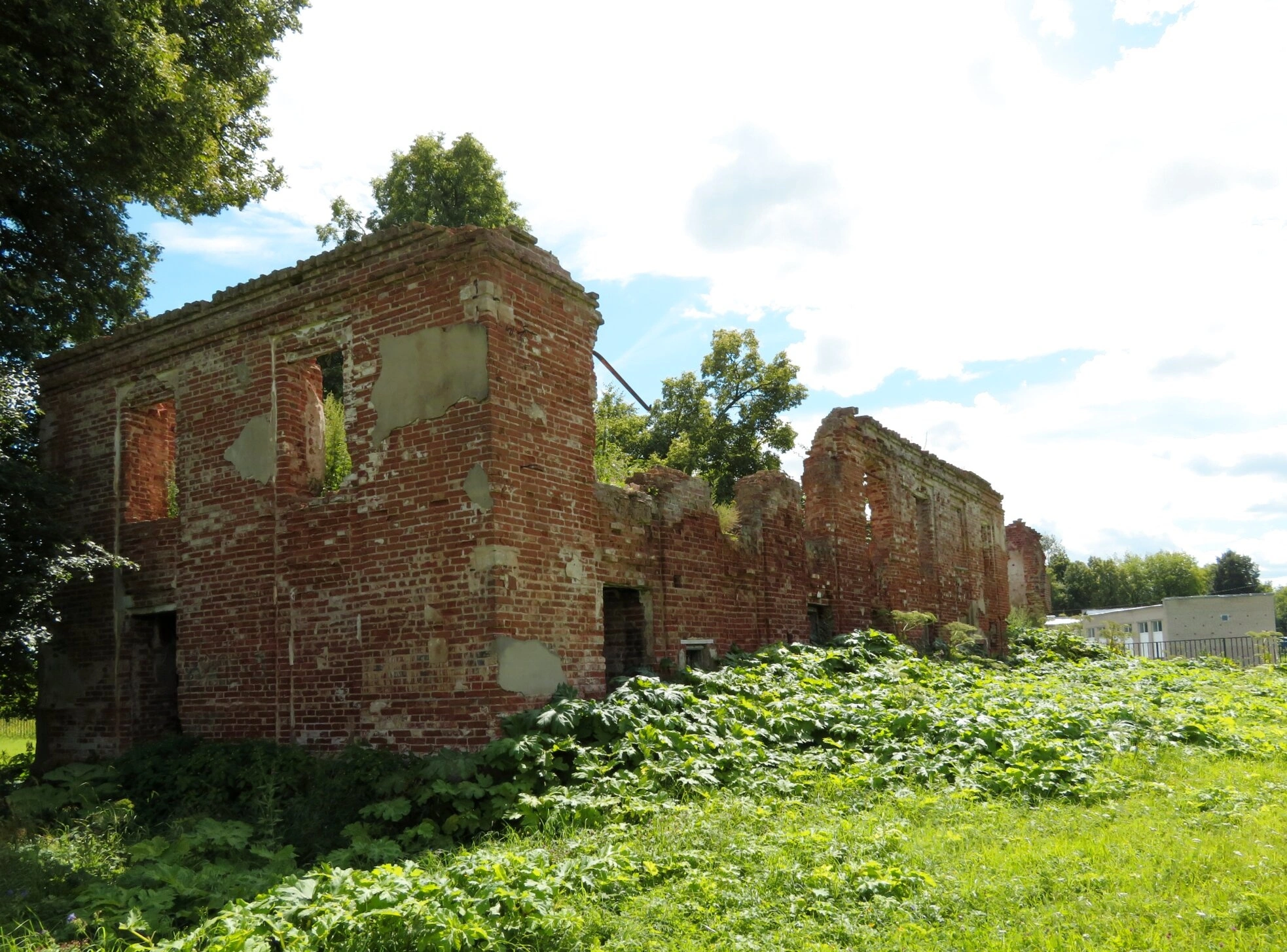 На представленной фотографии запечатлены скорбные руины некогда величественного православного храма — Церкви Рождества Пресвятой Богородицы в селе Никольском, также известном как Чубарово, что в Калужской области. Святыня, освящённая в честь одного из главных Богородичных праздников, ныне пребывает в запустении и разрухе. От былого благолепия сохранились лишь фрагменты несущих стен, сложенных из красного кирпича. Глядя на эти останки, душа скорбит о утраченной святыне, где некогда возносились молитвы ко Пресвятой Владычице нашей Богородице.