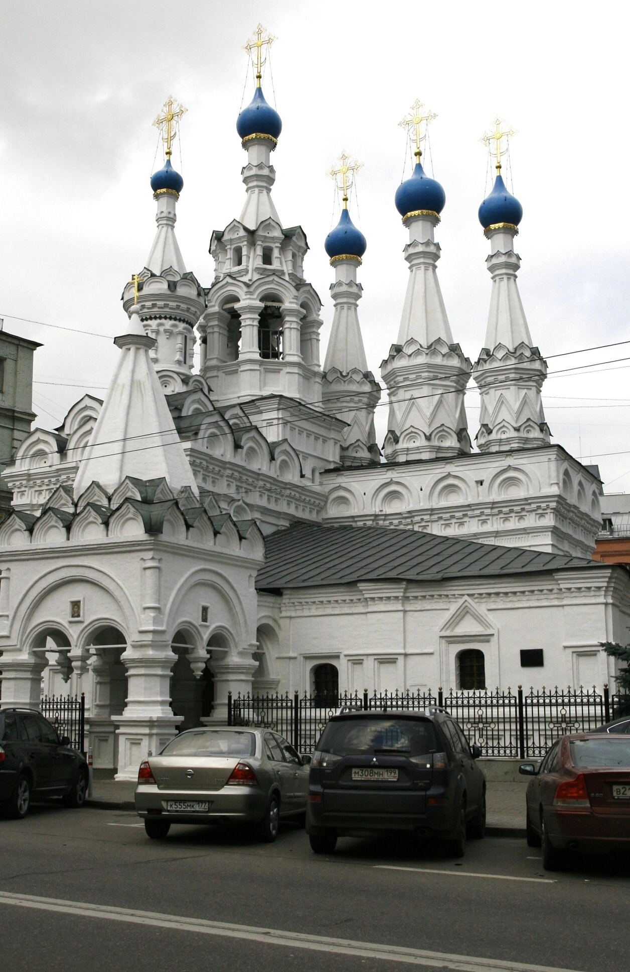 На представленной фотографии запечатлена Церковь Рождества Пресвятой Богородицы, что в Путинках, — один из выдающихся памятников русского церковного зодчества середины XVII столетия. Храм расположен в историческом центре Москвы, неподалёку от Тверской улицы, и является последним каменным шатровым храмом, построенным в русской столице до запрета патриархом Никоном подобного архитектурного решения.