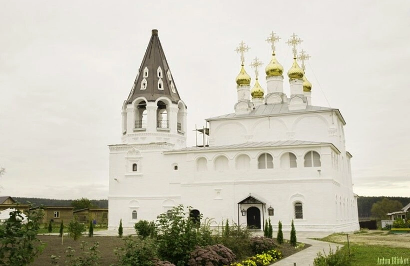 Храм представляет собой двухъярусное трехапсидное сооружение, увенчанное пятью златоглавыми барабанами, которые символизируют Господа нашего Иисуса Христа и четырёх евангелистов. Северо-западный угол храмового комплекса украшает стройная шатровая колокольня, тёмный силуэт которой эффектно контрастирует с белоснежными стенами основного здания.