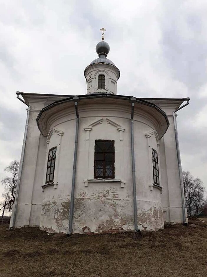 Архитектурный облик храма представляет собой характерный для барокко одноглавый четверик, увенчанный graceful луковичной главкой с установленным православным крестом. С восточной стороны к основному объёму примыкает полукруглая апсида, традиционная для православных церквей. Фасад здания, некогда покрытый белой штукатуркой, ныне показывает признаки естественного старения: в отдельных местах штукатурный слой обвалился, обнажив кирпичную кладку, стены покрыты следами атмосферных воздействий и высолами.