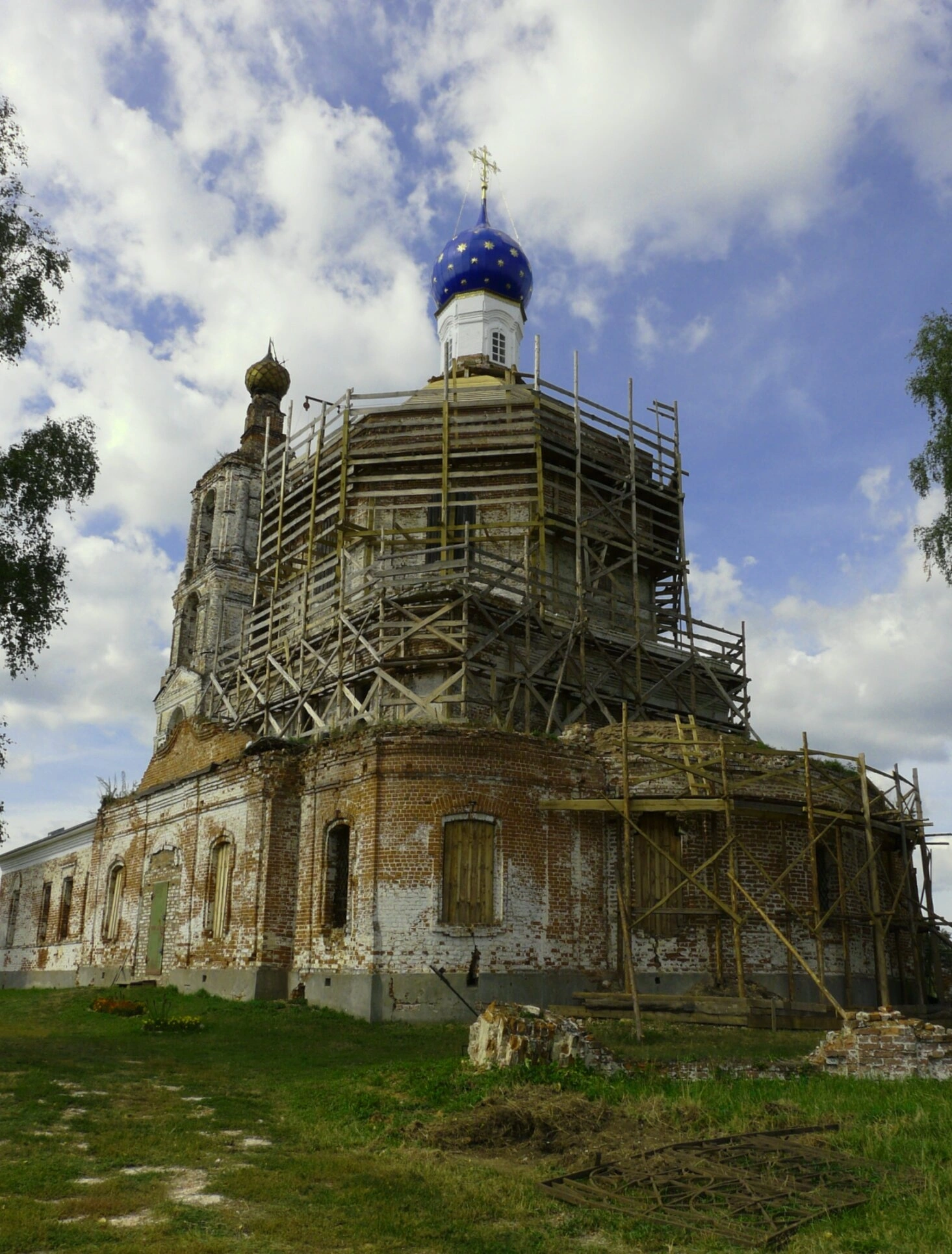 Данная фотография не просто фиксирует этап восстановления памятника церковной архитектуры, но и является свидетельством непрекращающейся заботы о сохранении духовного и культурного наследия России. Реставрационные работы дают надежду на возрождение полноценной приходской жизни в этом святом месте.