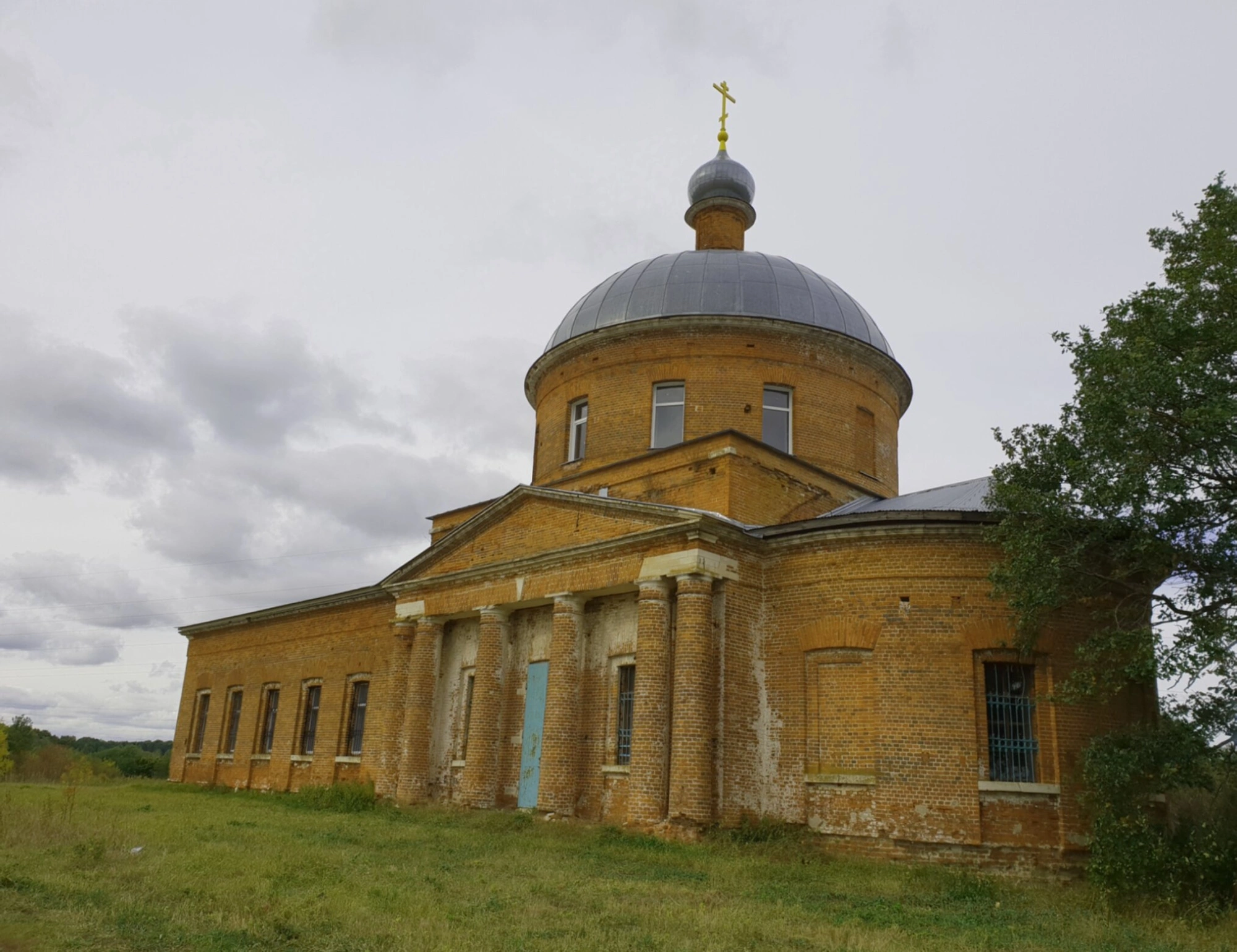 К сожалению, в настоящее время храм пребывает в заброшенном состоянии. На фотографии видны следы разрушения: обветшалая штукатурка, утраты в оконных заполнениях, повреждения элементов декора. Несмотря на это, здание сохраняет свои архитектурные очертания и продолжает оставаться важным историко-культурным объектом, свидетельствующим о духовной жизни данного края.