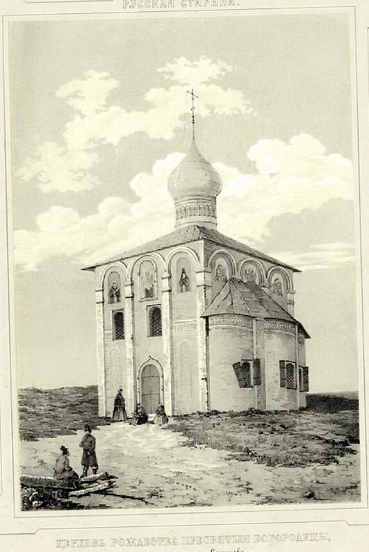Фото церкви Рождества Пресвятой Богородицы в Старом Симонове на старинной гравюре