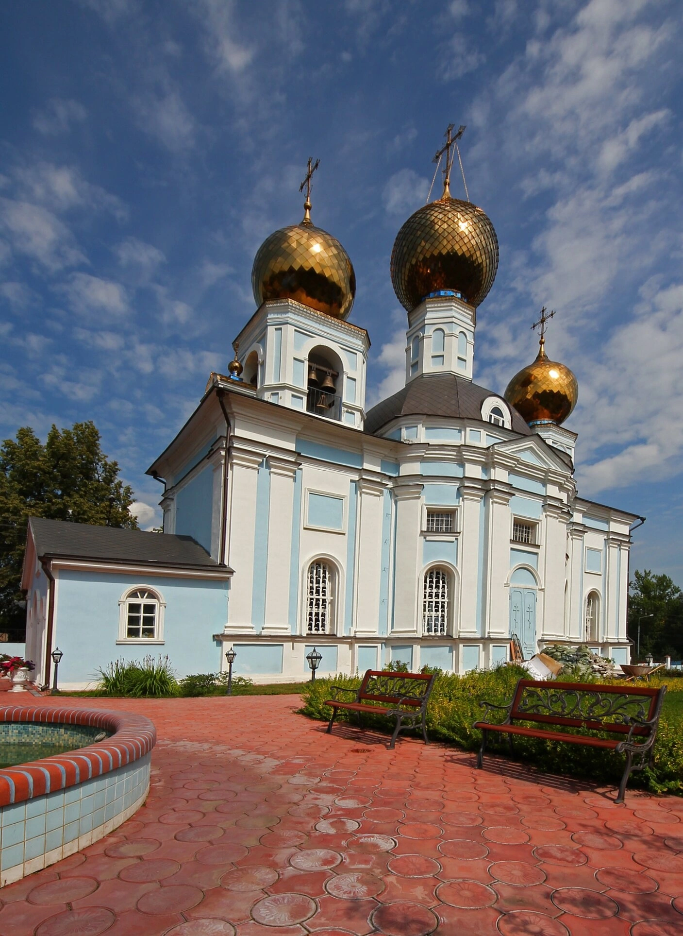 Белоснежные стены храма украшены пилястрами и увенчаны золочёными главками, которые символизируют горний мир и устремлённость верующих к Небесному Царству. В советский период, как и многие другие святыни, храм претерпел годы запустения и был возвращён Русской Православной Церкви для возрождения приходской жизни в конце XX века.