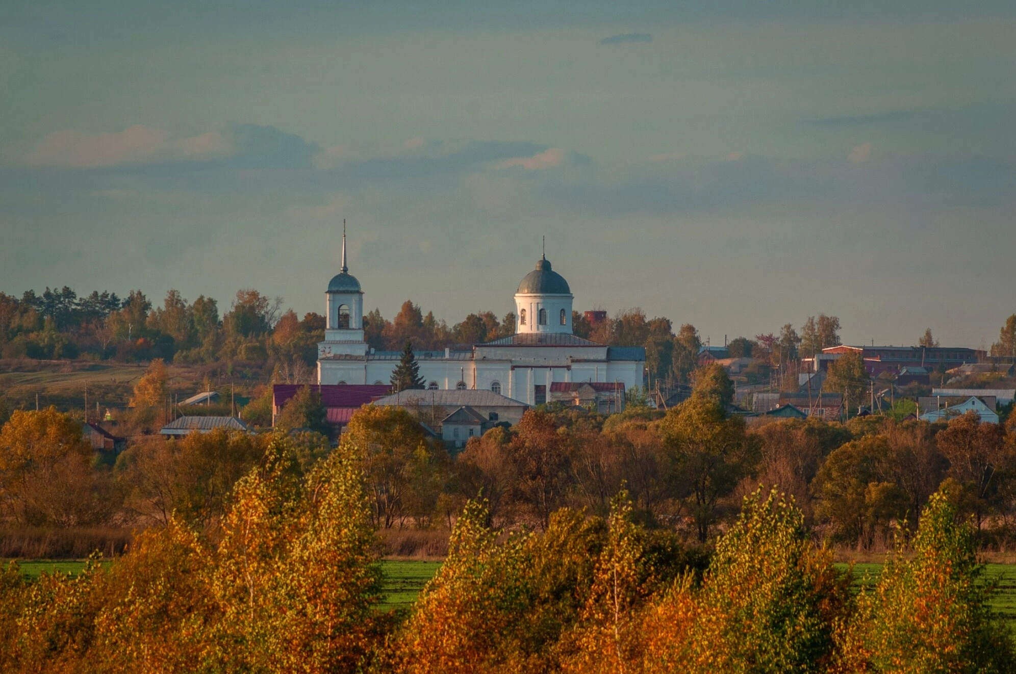 Осеннее время года придает фотографии особое настроение умиротворения и духовной сосредоточенности. Пожелтевшие березы и клены, окружающие церковь, создают ощущение тепла и уюта, контрастируя с прохладной голубизной неба. Отсутствие людей на снимке позволяет в полной мере насладиться величием храма и красотой божьего мира.