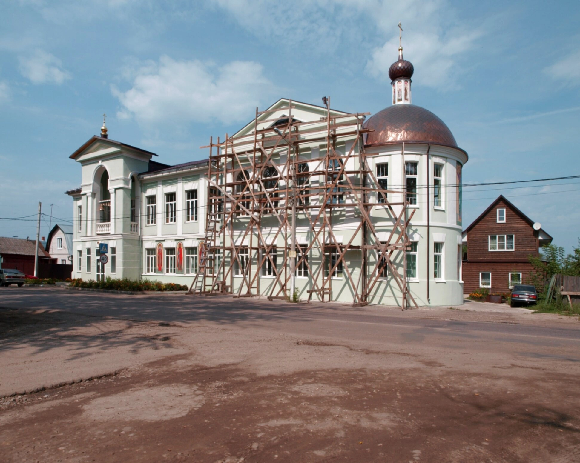 Проводимые на момент фотографирования реставрационные работы направлены на сохранение архитектурного облика и целостности этого духовного центра. Подобные мероприятия обеспечивают возможность будущим поколениям верующих прихожан и ценителей православной культуры продолжать знакомство с уникальным наследием Русской Православной Церкви. Восстановление храмов является важным делом возрождения духовных традиций нашего народа.