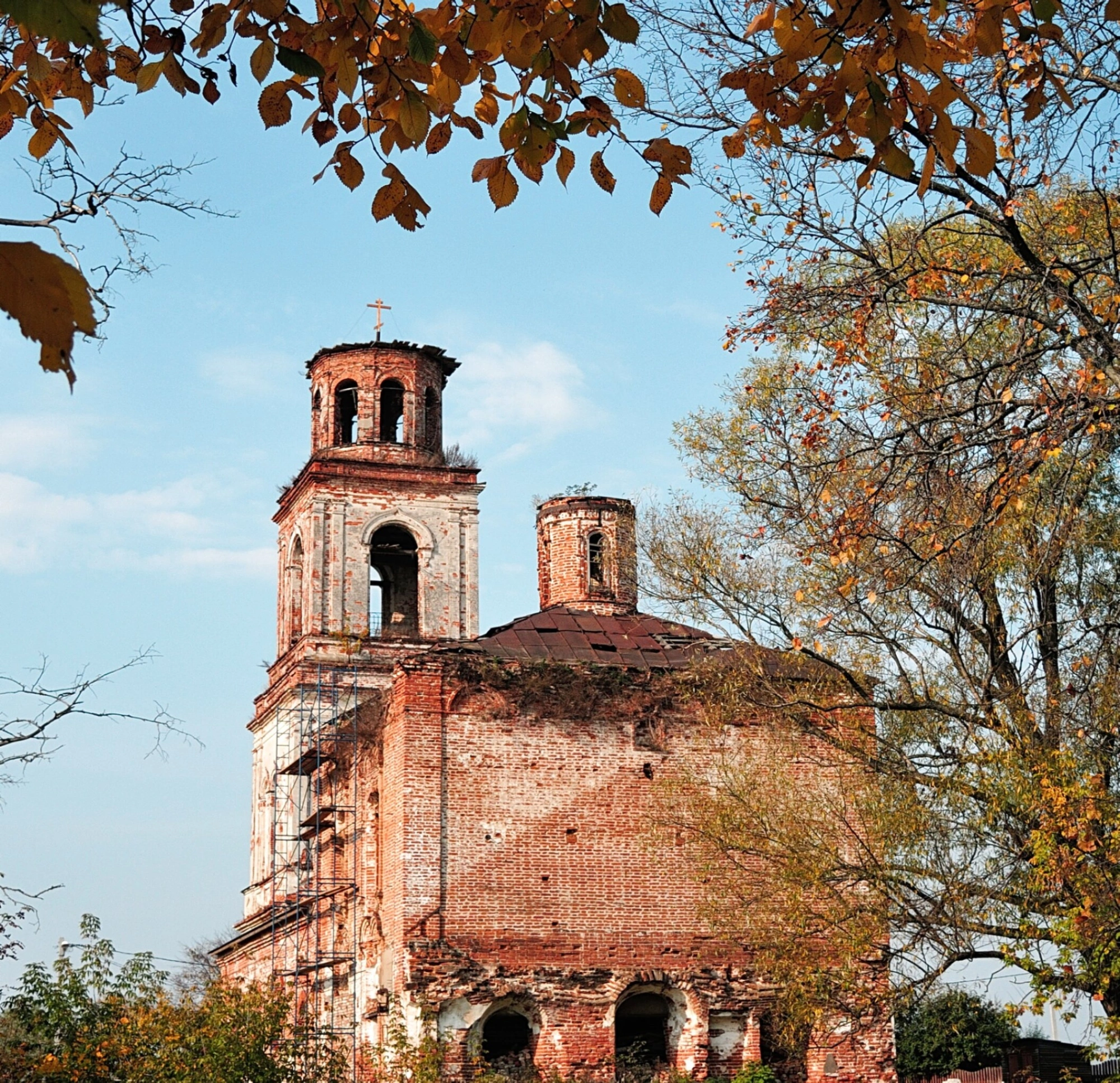 Осенняя листва, обрамляющая храм, символически оттеняет его печальное состояние, напоминая о быстротечности земного бытия и необходимости сохранения духовного и исторического наследия. Несмотря на запустение, храм продолжает оставаться памятником русской православной культуры и архитектуры, призывая к молитвенной памяти о прошлом и надежде на возрождение.