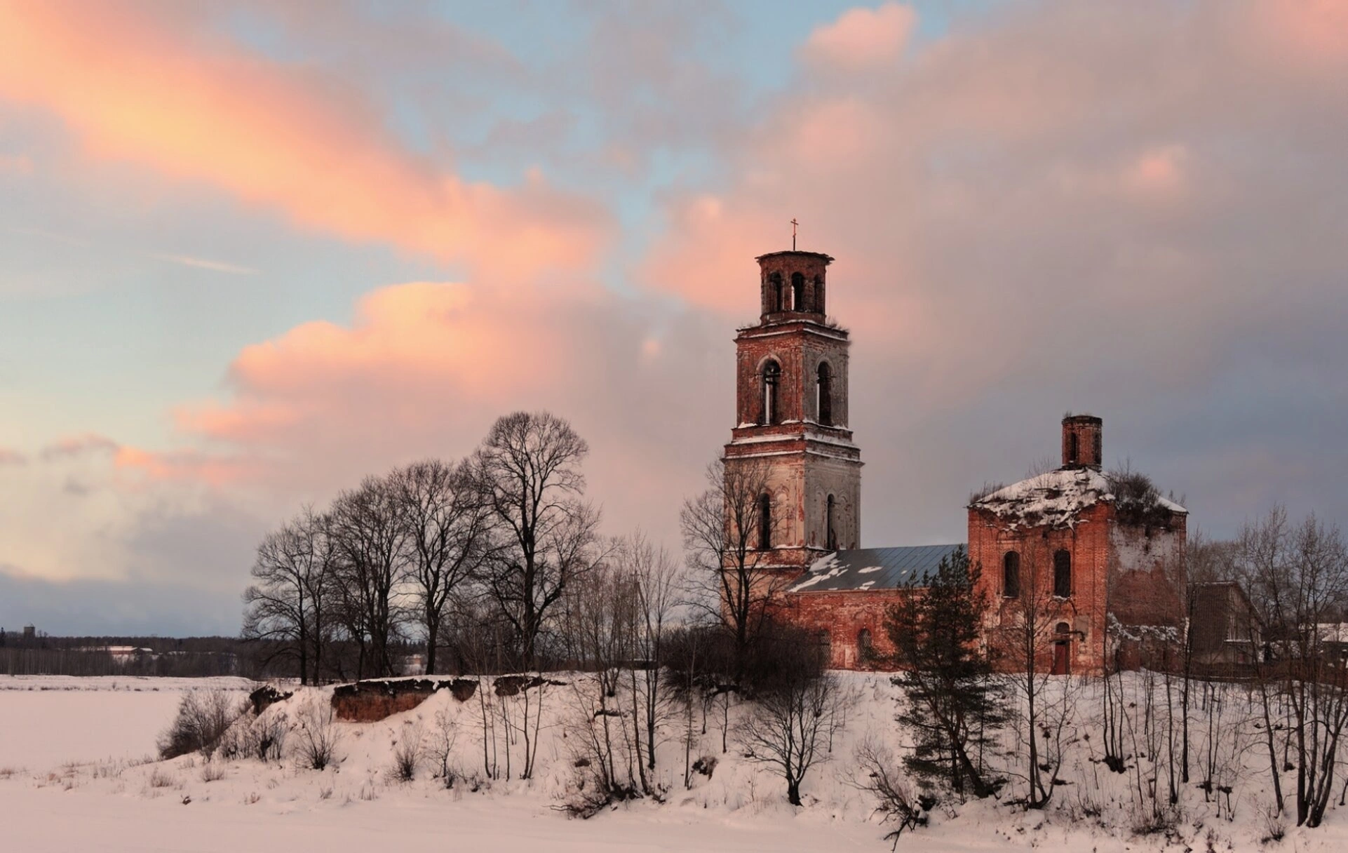 - Церковь Смоленской иконы Божией Матери в селе Устье в зимнем убранстве