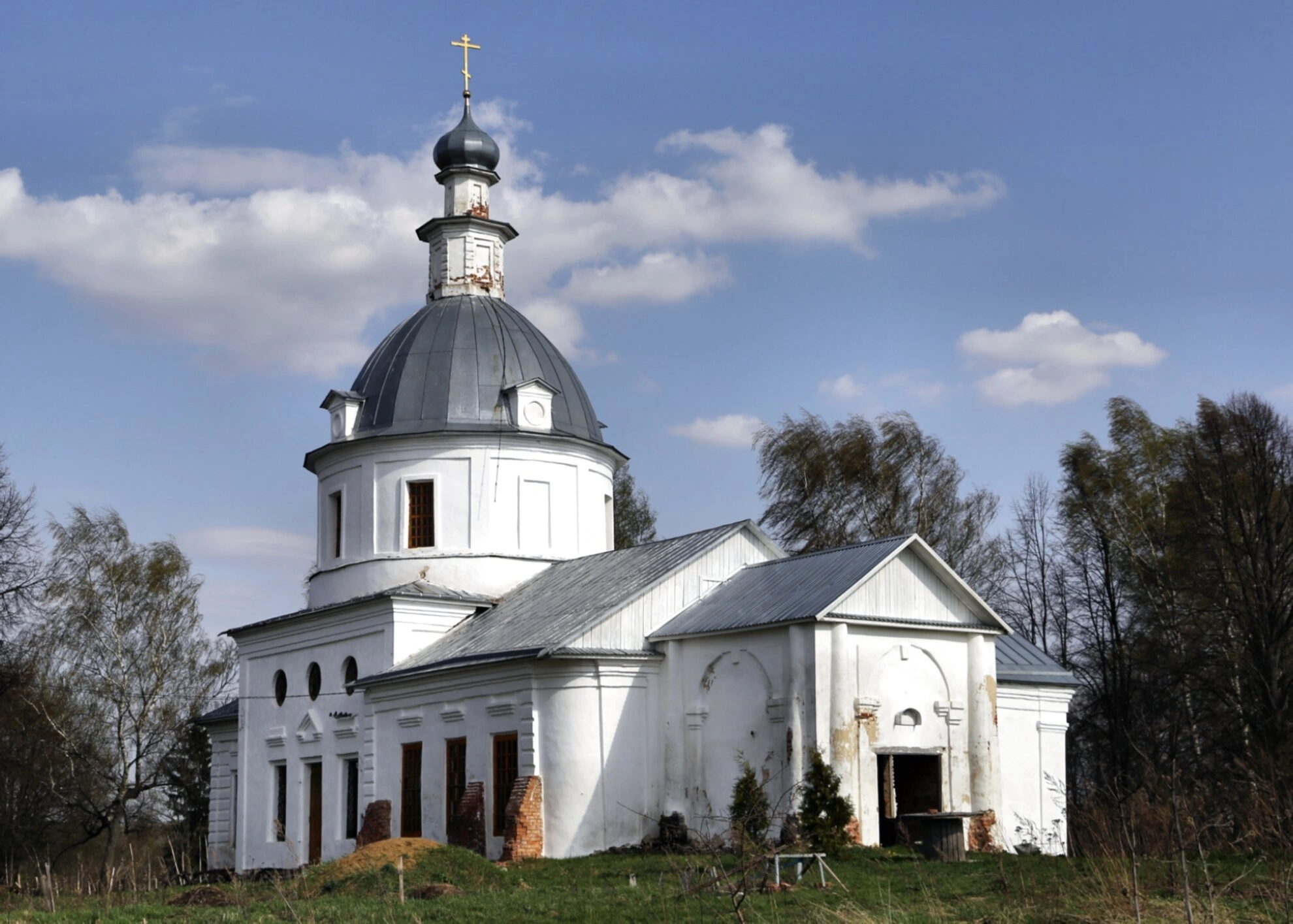 Окружающая храм природа создает особую атмосферу: голые ветви деревьев, окружающих церковь, и осока у стен подчеркивают заброшенность места. Однако голубое небо с белыми облаками, запечатленное на фотографии, придает снимку светлое, возвышенное настроение, напоминая о духовном предназначении этого архитектурного памятника.