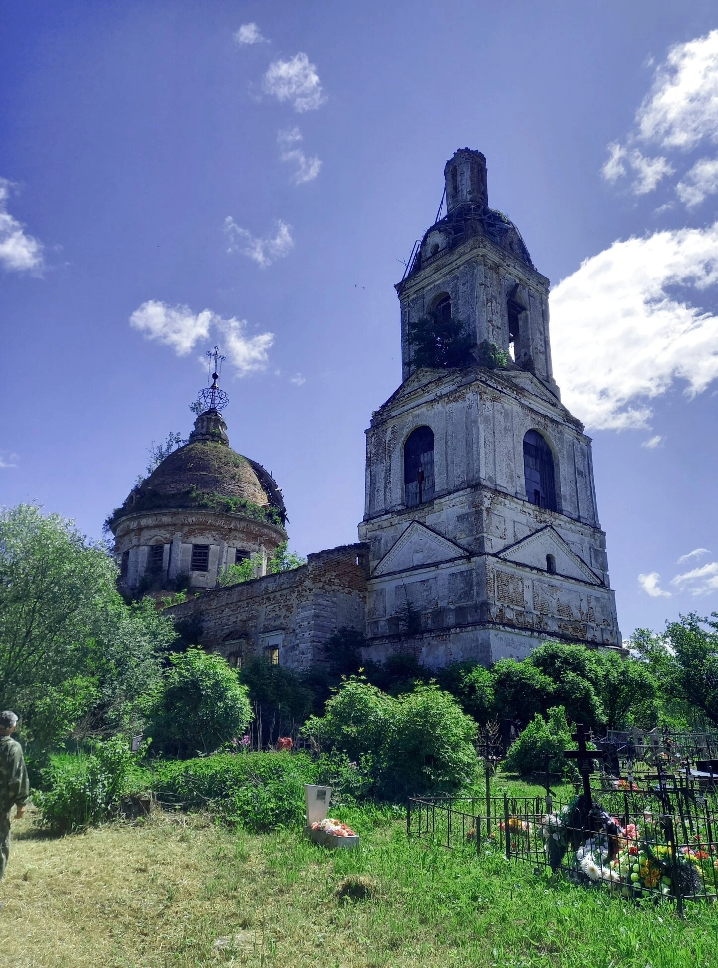 Вокруг храма просматривается заброшенное кладбище с сохранившимися надгробиями и крестами, что указывает на многовековую историю этого святого места. Местоположение храма на высоком берегу реки Юхоть создавало особую сакральную атмосферу, характерную для северорусских погостов.