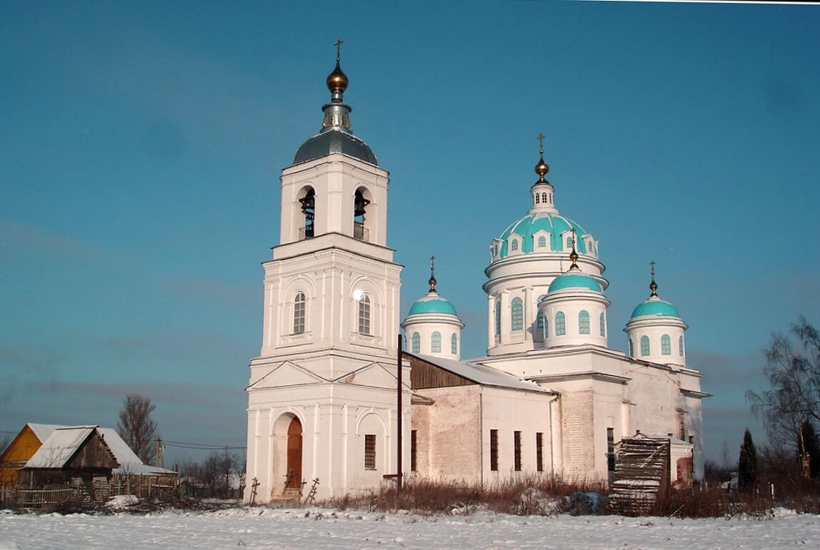 На представленной фотографии запечатлена Церковь Сошествия Святого Духа, расположенная в селе Новое Переславского района Ярославской области. Храм является выдающимся памятником православной архитектуры и духовным центром всего окрестного региона.