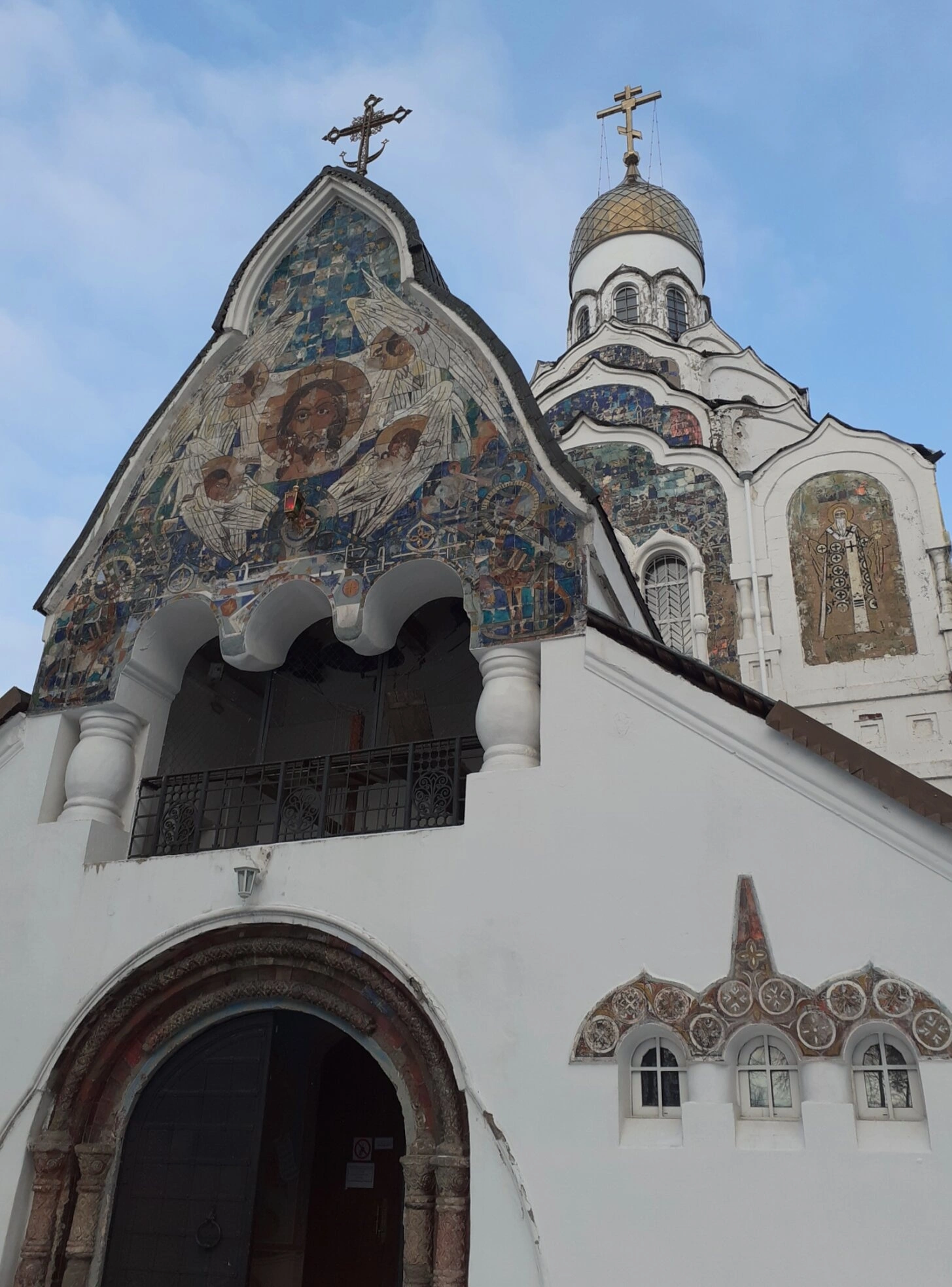На представленной фотографии запечатлена Церковь Спаса Нерукотворного Образа, расположенная в посёлке Клязьма Московской области. Святыня возведена в начале XX века по проекту архитектора Сергея Ильича Вашкова, ученика знаменитого зодчего Алексея Викторовича Щусева. Храм представляет собой выдающийся образец неорусского стиля в церковной архитектуре.