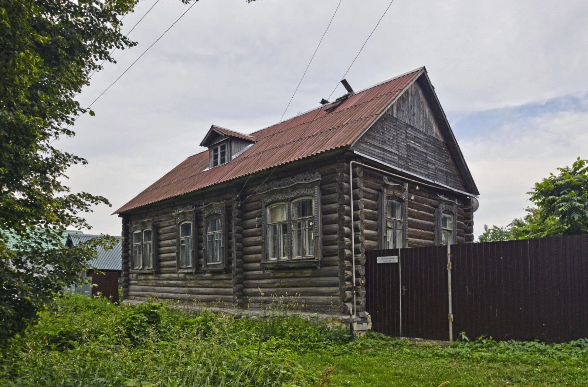 На представленной фотографии запечатлена Церковь Спаса Преображения, известная также как Фруктовая, расположенная в селе Дединово Луховицкого района Московской области. Этот старинный православный храм представляет собой уникальный образец деревянного зодчества, выполненный из тёмных брёвен, которые свидетельствуют о его почтенном возрасте.