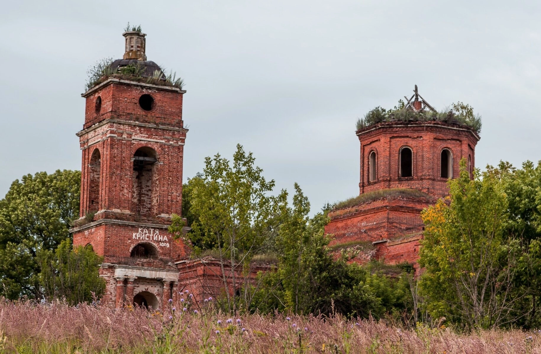 Храм окружает густая летняя растительность, которая подчеркивает состояние забвения, в котором пребывает святое место. На стене колокольни отчетливо видна надпись «КАТЯ КРИСТИНА 2005», оставшаяся как свидетельство недавней человеческой памяти об этом объекте культурного наследия. Эта граффити создает особый контраст между вечностью веры и быстротечностью человеческой жизни.