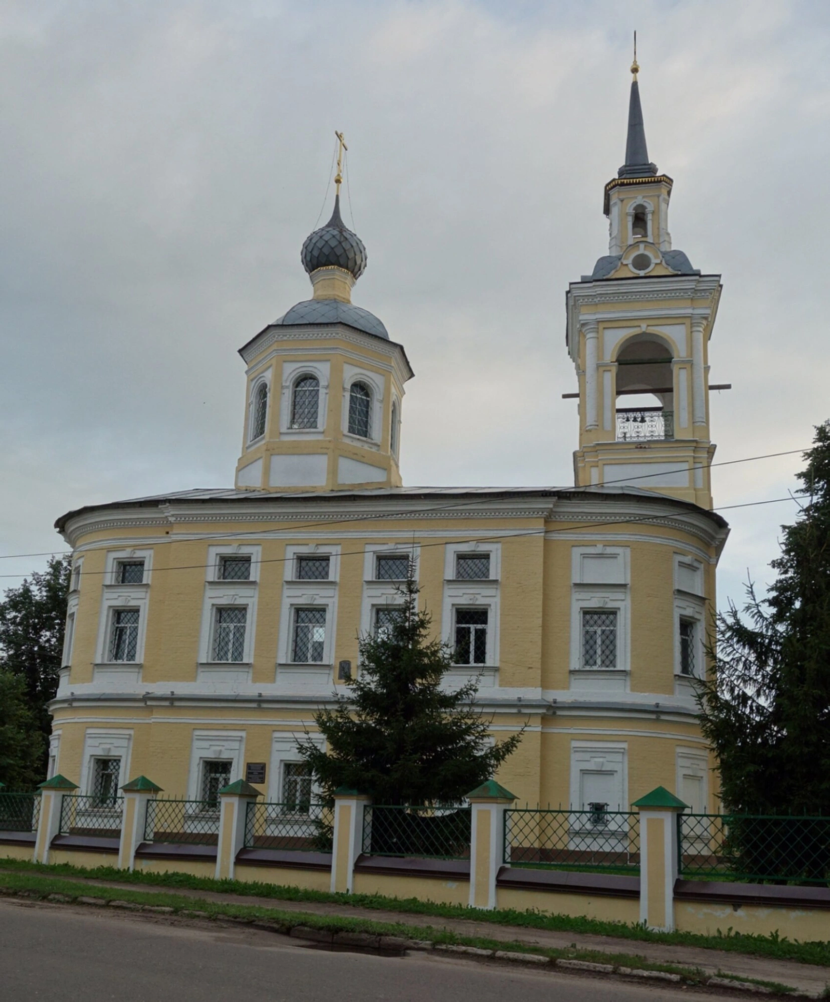На представленной фотографии запечатлён храм в честь Преображения Господня, расположенный в древнем городе Нерехте Костромской области. Этот православный храм, освящённый во имя Спаса Преображения, является выдающимся памятником церковной архитектуры эпохи классицизма и объектом культурного наследия.