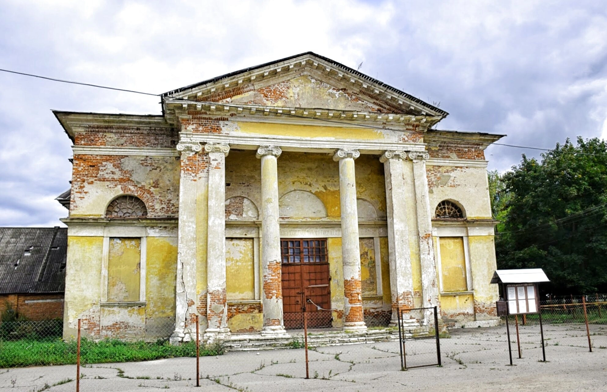Состояние храма на момент съёмки вызывает глубокую скорбь. Святыня пребывает в запустении: кирпичные стены частично лишились штукатурного слоя, центральный вход заколочен деревянными щитами, оконные проёмы либо заложены кирпичом, либо закрыты досками. Некоторые окна сохранили свою первоначальную полукруглую форму, напоминая о былом архитектурном благолепии. Кровля храма выполнена из черепицы, что характерно для церковного зодчества соответствующего периода.