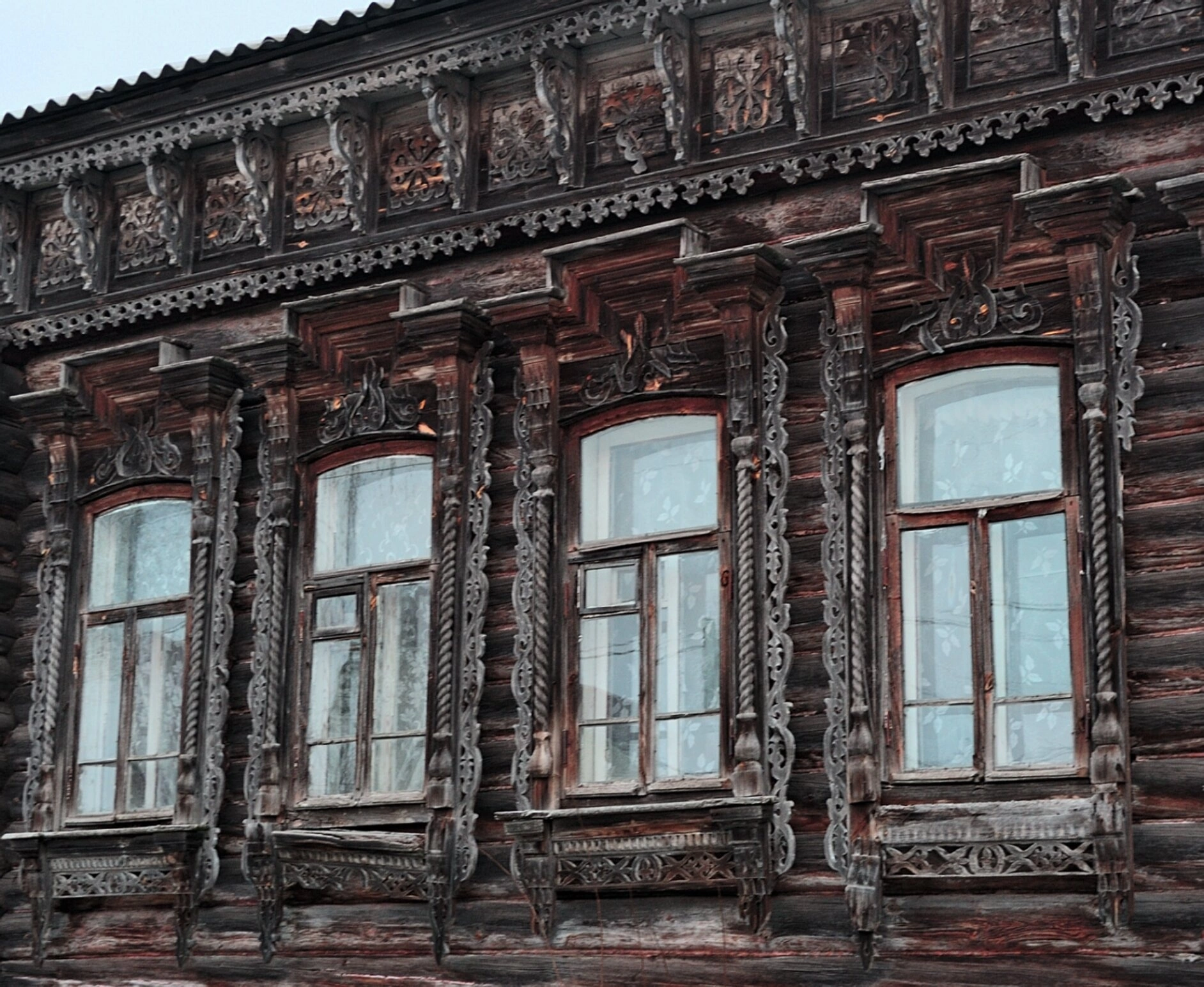 Особого внимания заслуживает изящный резной декор, украшающий оконные проёмы храма. Наличники окон выполнены с применением сложных геометрических орнаментов и растительных мотивов, характерных для церковной архитектуры. Ажурная резьба карнизов дополняет общий образ священного сооружения, придавая ему благолепие и духовную значимость.
