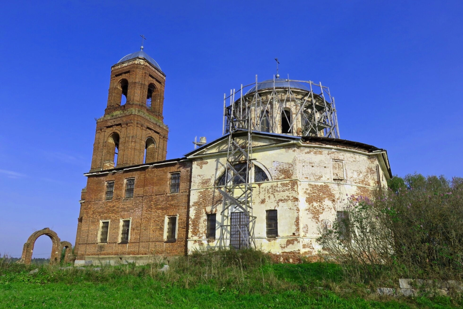 Церковь в Спас-Надеждино, даже пребывая в руинах, остаётся немым свидетелем истории, символом веры и духовной стойкости, напоминая о былых временах и надежде на возрождение порушенных святынь. Фотография фиксирует важный момент этого трудного пути от забвения к восстановлению.