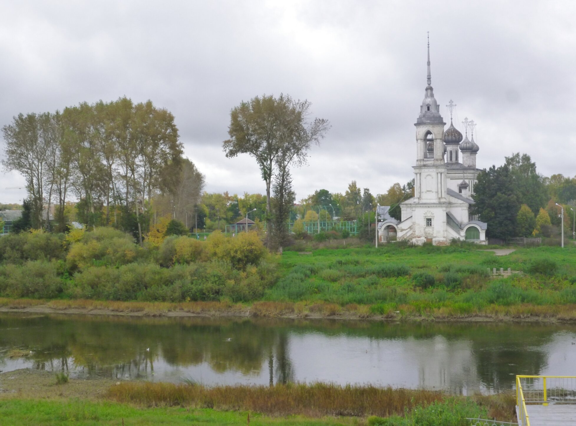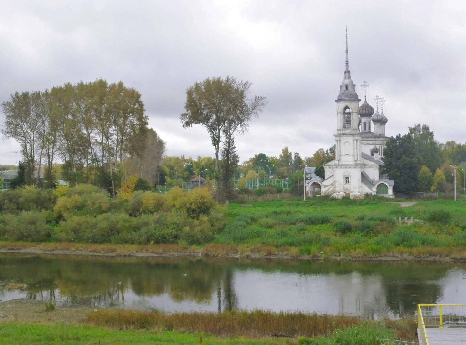 Храм Сретения Господня, чьи купола и стройная колокольня со шпилем отражаются в спокойных водах реки, представляет собой прекрасный образец храмового зодчества. Его освящение во имя праздника Сретения, символизирующего встречу Ветхого и Нового Заветов, придаёт месту особую благодатную значимость.