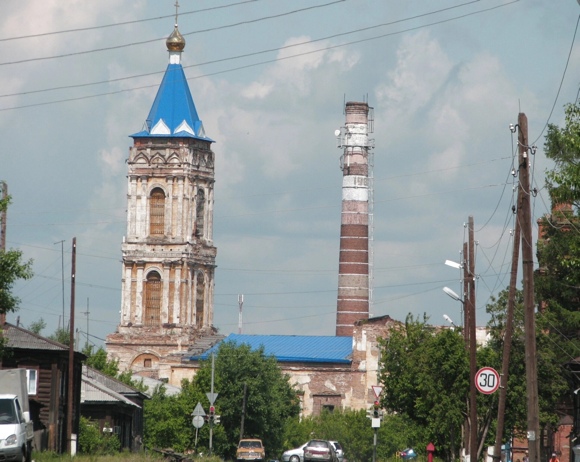 Храм Сретения Господня имеет глубокую историю, уходящую корнями в дореволюционное прошлое Урала. Первый деревянный храм в честь Сретения располагался на месте современного тюремного замка, а каменная церковь, часть которой мы видим на снимке, была возведена позднее и стала неотъемлемой частью архитектурного облика и духовной жизни города.