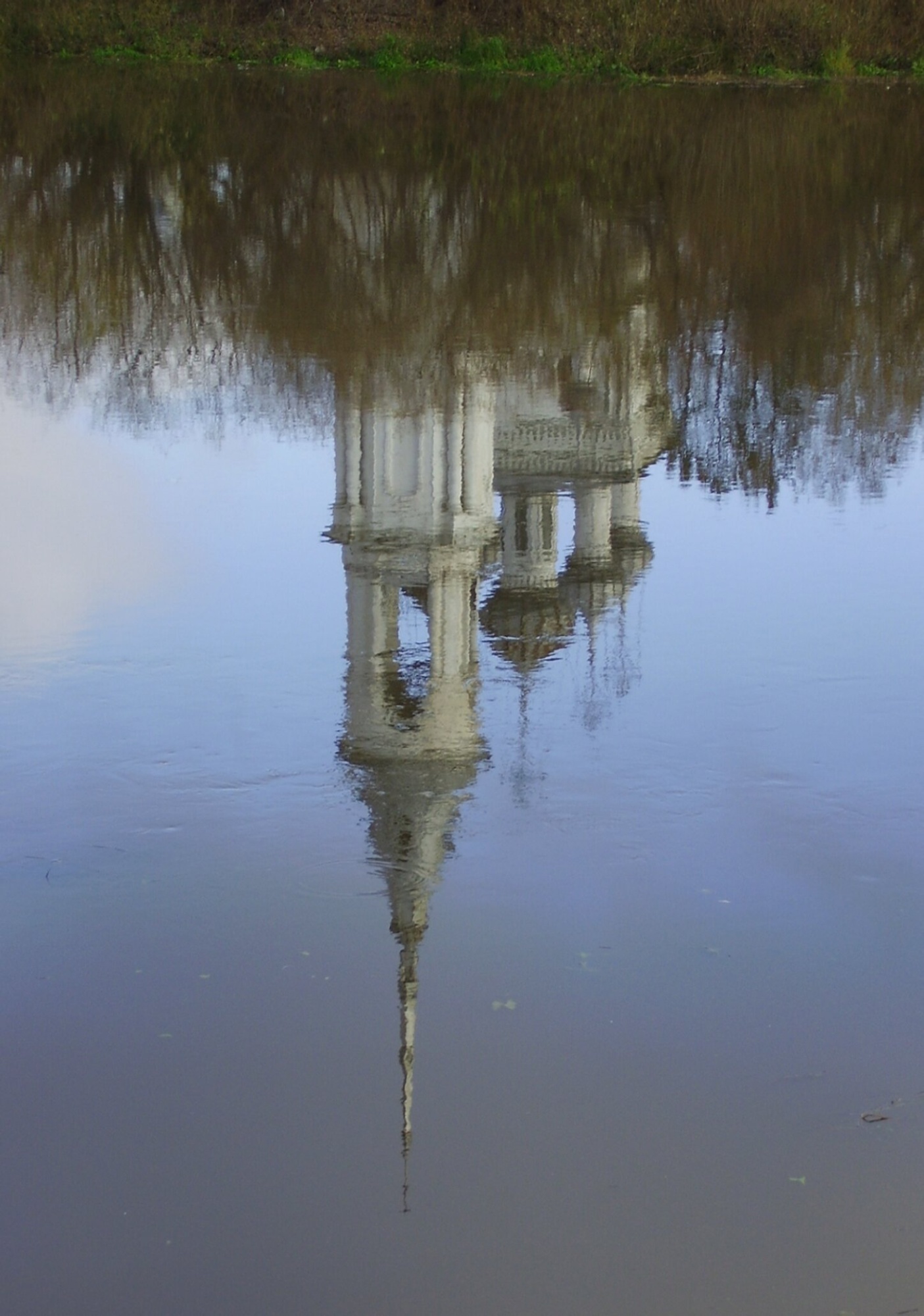 На фотографии запечатлен величественный образ Церкви Сретения Господня, что на Набережной, в его совершенном воплощении – храм и его отражение в спокойных водах реки Вологды. Этот сакральный образ, объединяющий небесное и земное, передает особую благодать и духовное умиротворение, исходящие от святого места. Стройный силуэт храма, устремленный ввысь, символически отражает молитвенное возношение человеческой души к Богу.