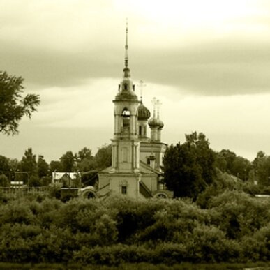 На представленной фотографии запечатлён живописный вид Церкви Сретения Господня, что расположена на Набережной в историческом районе Заречье города Вологды. Этот православный храм, освящённый в честь одного из двунадесятых праздников — Сретения Господня, по праву считается одним из наиболее выразительных архитектурных памятников города, выделяясь своим нарядным и праздничным обликом.