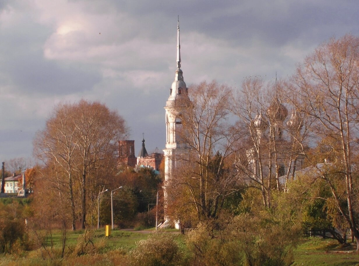На фотографии запечатлена Церковь Сретения Господня, что на Набережной, — один из выдающихся православных храмов города Вологды. Этот памятник архитектуры федерального значения, расположенный на живописном берегу реки Вологды в историческом районе Заречье, приковывает взгляд своим стройным силуэтом и нарядным убранством.