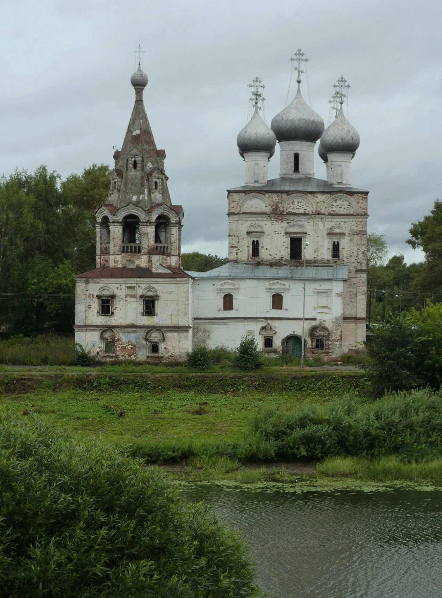 Окружает дом Божий типичный для русского севера пейзаж: неширокая река, поросшая по берегам зеленью, и скромная растительность, подступающая к самой церковной ограде. Пасмурное небо, запечатлённое на снимке, добавляет величия и некого благостного умиротворения всему виду, напоминая о вечном и непреходящем.