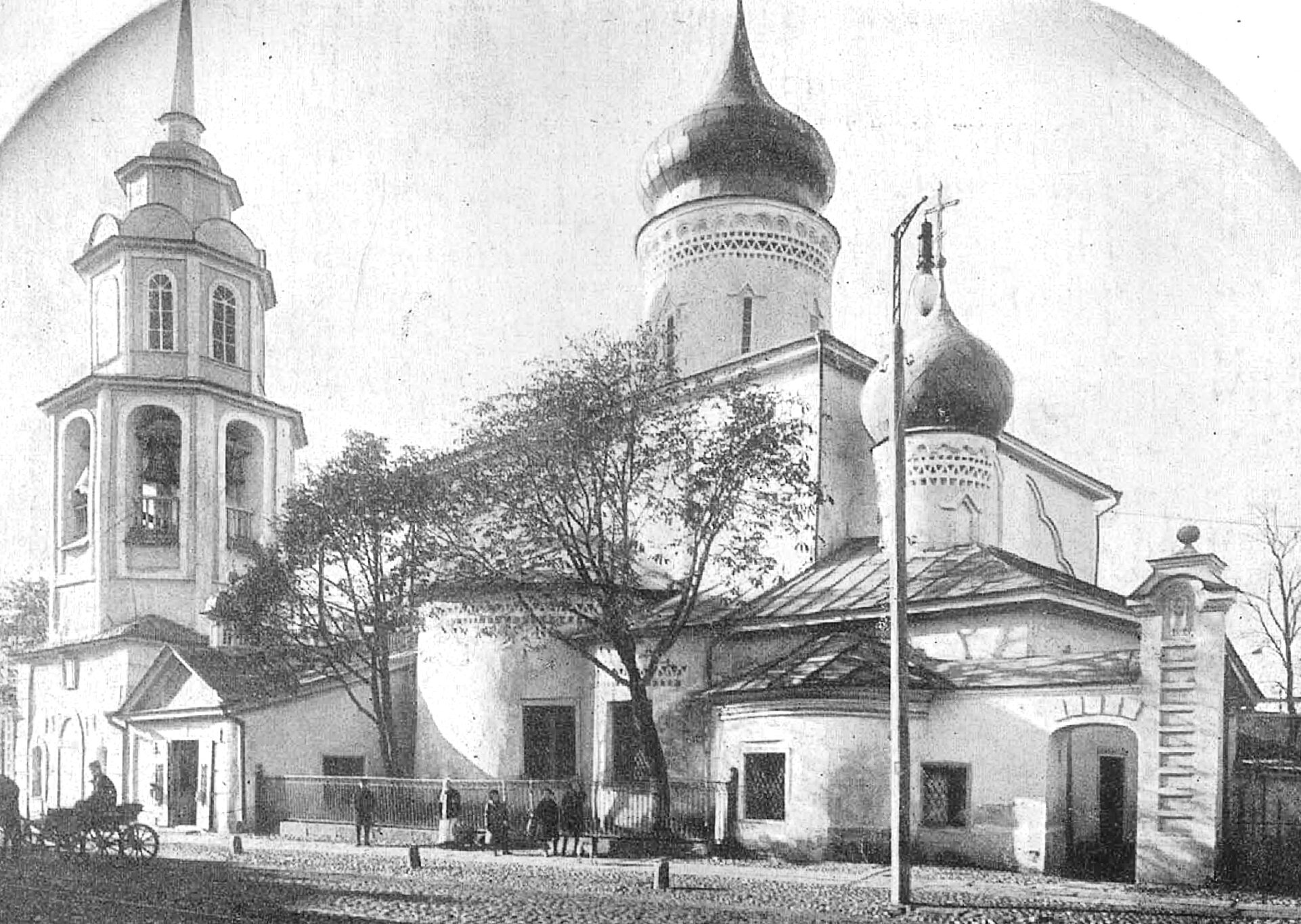 На переднем плане снимка видна мощёная булыжником улица, по которой движется конная повозка, что позволяет отнести фотографию к концу XIX — началу XX века. Окружающий пейзаж с деревьями и fragmentом ограды подчёркивает уединённый и благоговейный характер этого святого места. У стен храма видны фигуры людей, что напоминает о его главном предназначении — быть домом молитвы для верующих. Церковь Николая со Усохи, пережившая века и лихолетья, остаётся одним из духовных символов древнего Пскова.