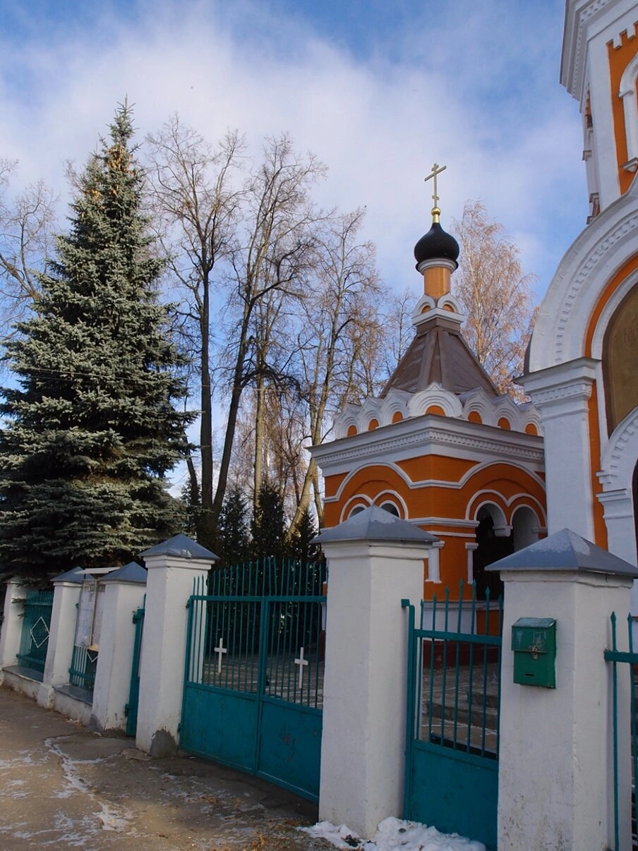 На представленной фотографии запечатлён вход на территорию старинного Никольского храма в городе Солнечногорске. Святыня, освящённая в честь святителя Николая, архиепископа Мир Ликийских, чудотворца, является одной из духовных доминант города и объектом культурного наследия.