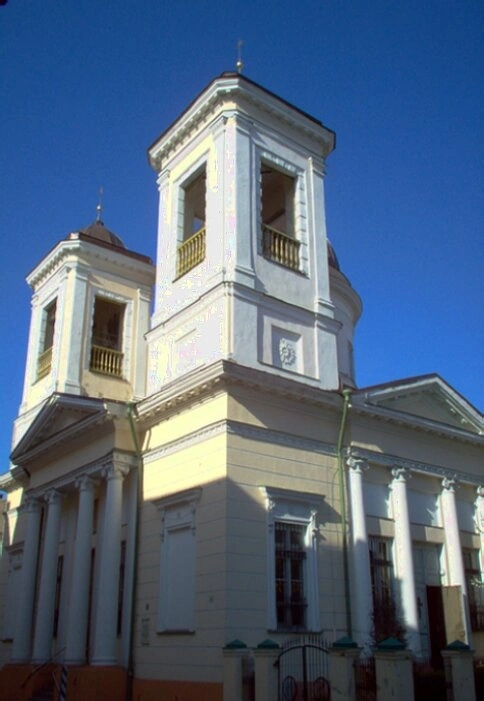 Свято-Никольский храм был возведён в 1820 году по повелению императора Александра I на месте более древней культовой постройки. Освящение церкви состоялось в 1827 году. Архитектурный облик храма является ярким примером русского классицизма, для которого характерны строгость форм, симметричность композиции и монументальность. Центральный кубовидный объём увенчан мощным световым барабаном с пологим куполом, на котором установлена главка с православным крестом. Фасад украшен строгим портиком с колоннами дорического ордера и треугольным фронтоном, что придаёт зданию особую торжественность и величие.