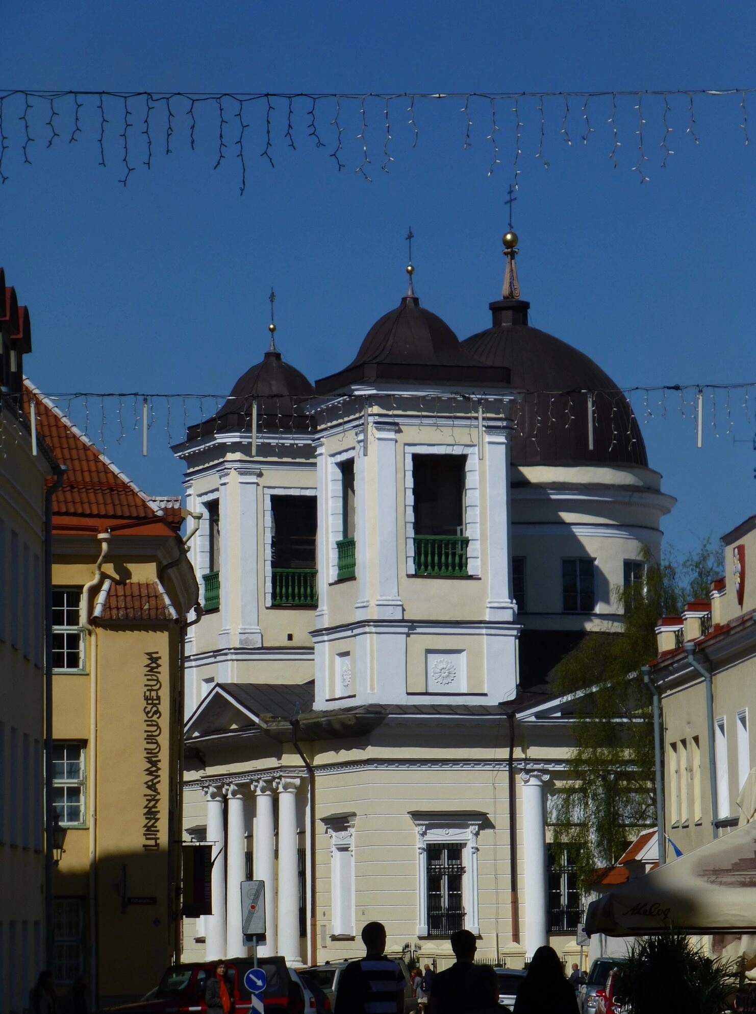 На представленной фотографии запечатлён величественный вид православного храма во имя Святителя Николая Чудотворца, находящегося в столице Эстонии, городе Таллине. Это один из духовных центров православия в стране, расположенный в сердце Старого города, на улице Вене.
